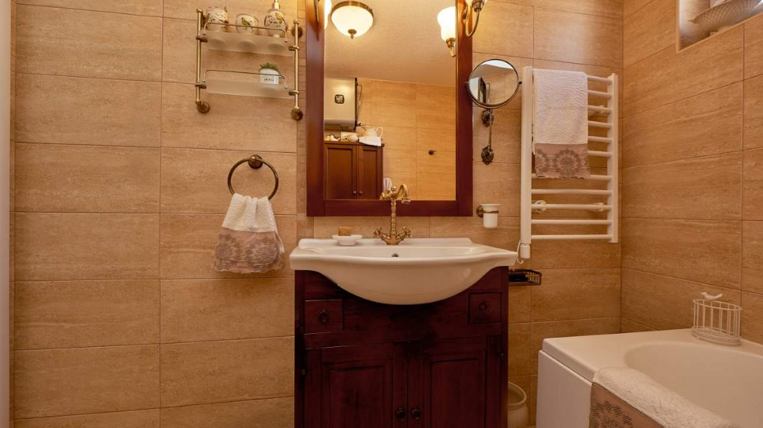 Structure: three bedrooms, two bathrooms (one with bathtub).