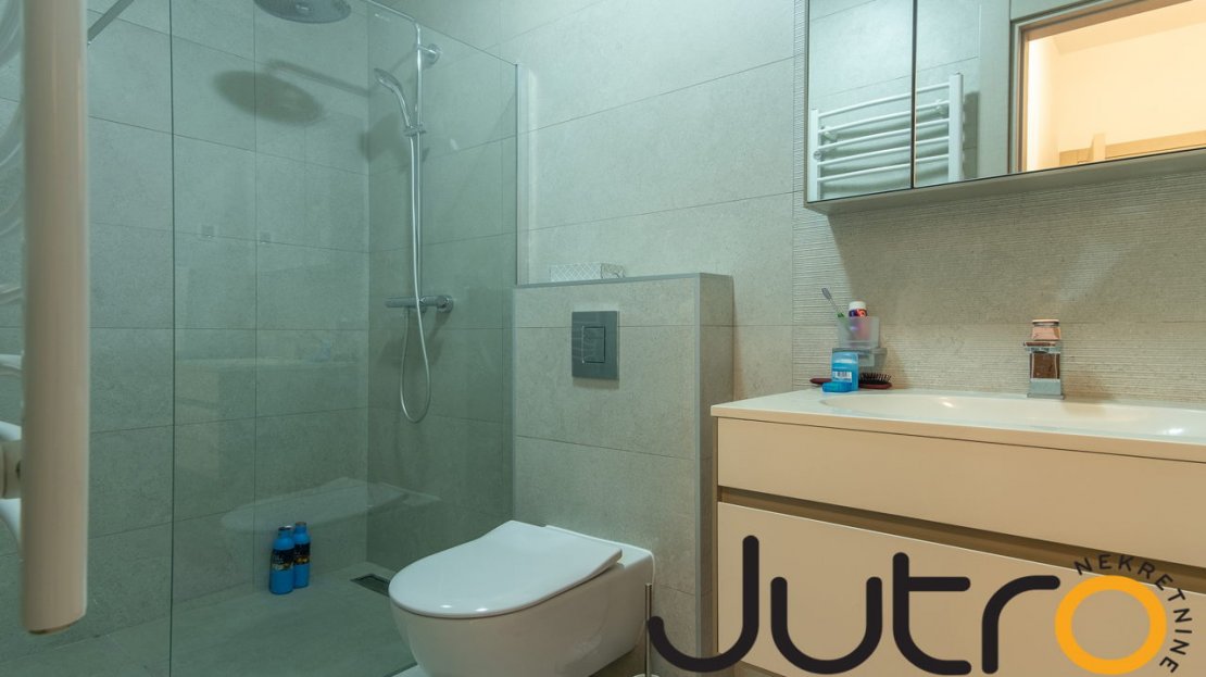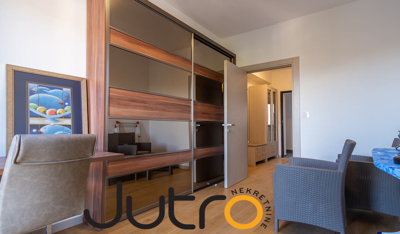 This fully furnished two bedroom apartment is located in 19. decembra street on the fifth floor, facing east, at the foot of Gorica hill. The apartment has a surface of 70 sqm.