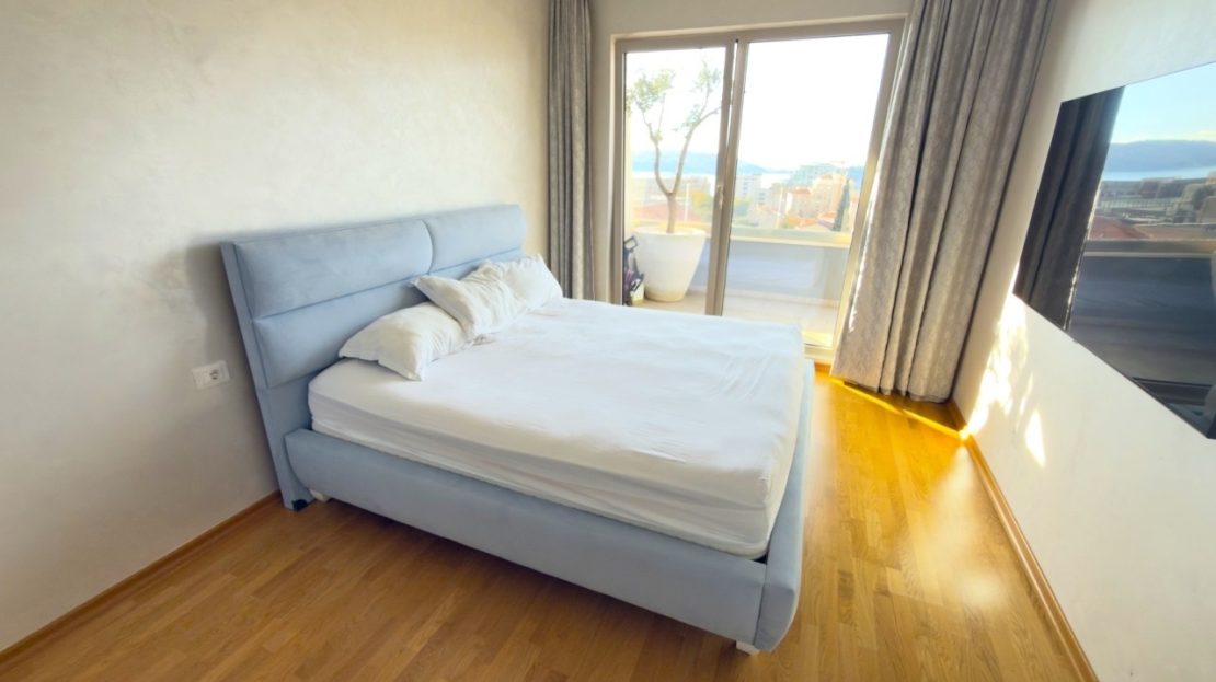 This modern, fully furnished penthouse is situated in a recently built residential building (completed in 2020, occupied in 2021), just a short walk – 500 meters – from the renowned Becici Beach.