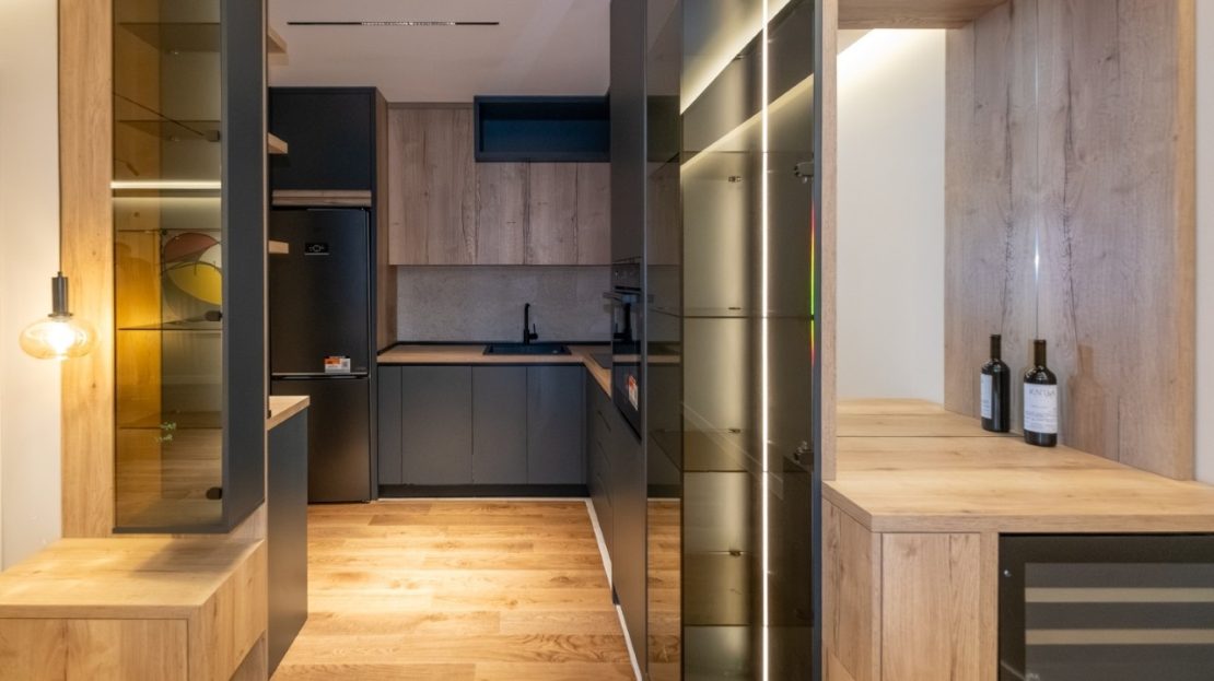 • Fully equipped kitchen with complete appliances and a wine cooler
