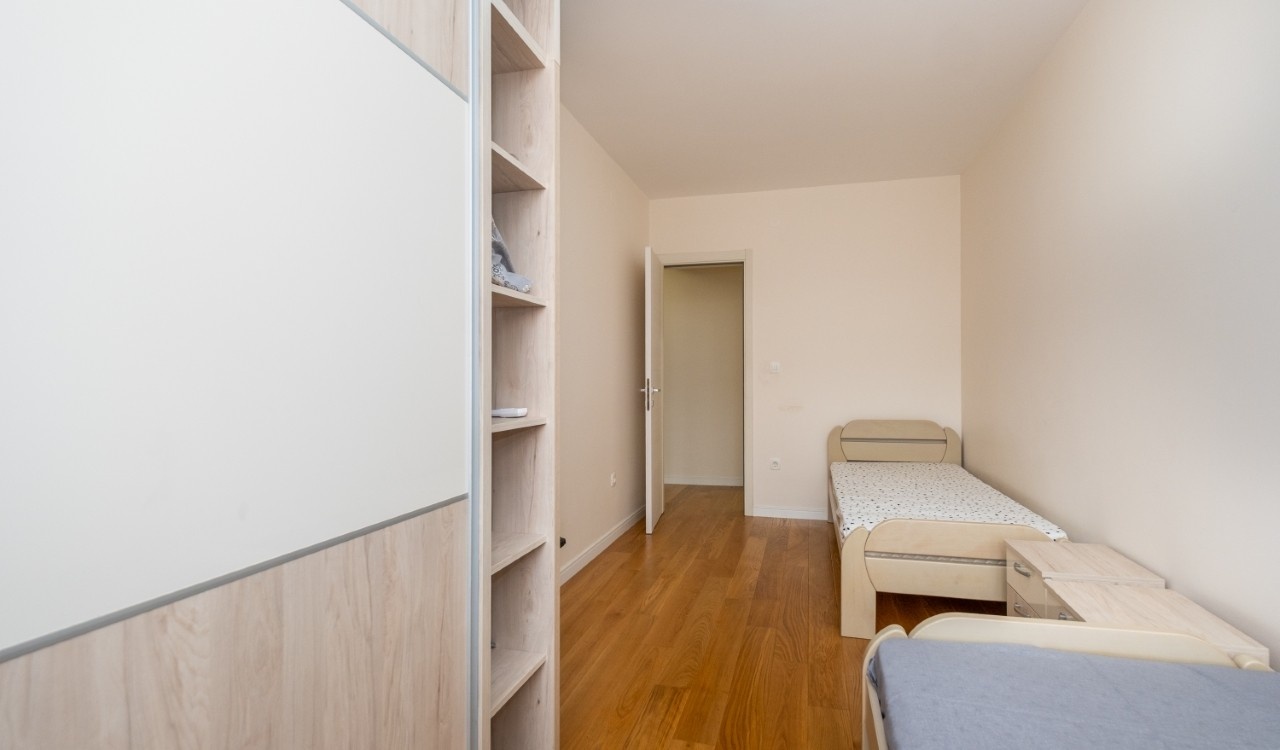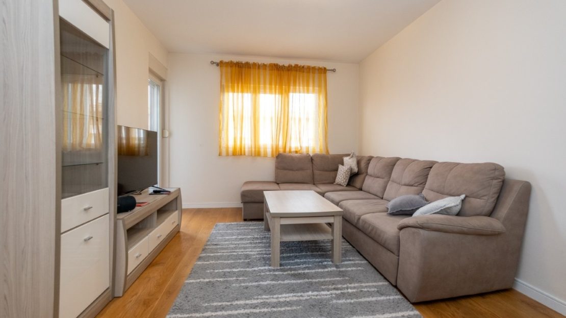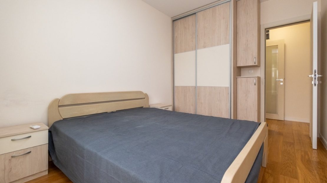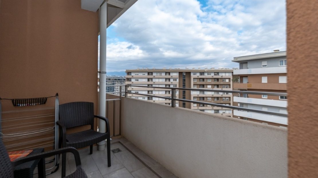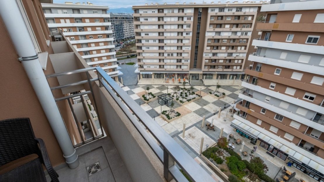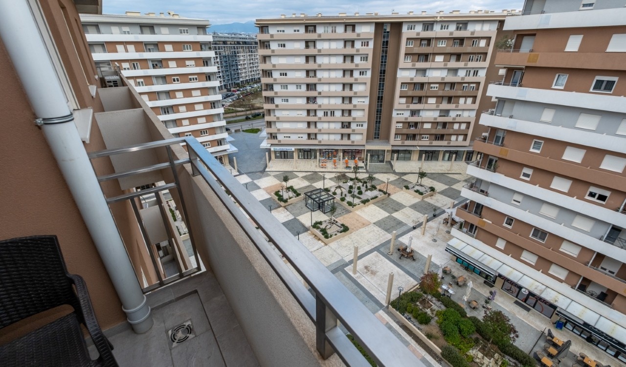 A modern and functional two bedroom apartment is located in the new Central Point complex in Podgorica.