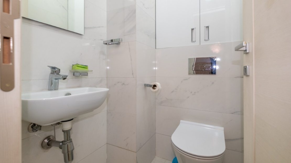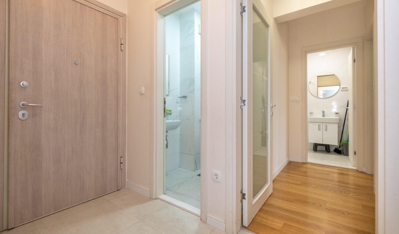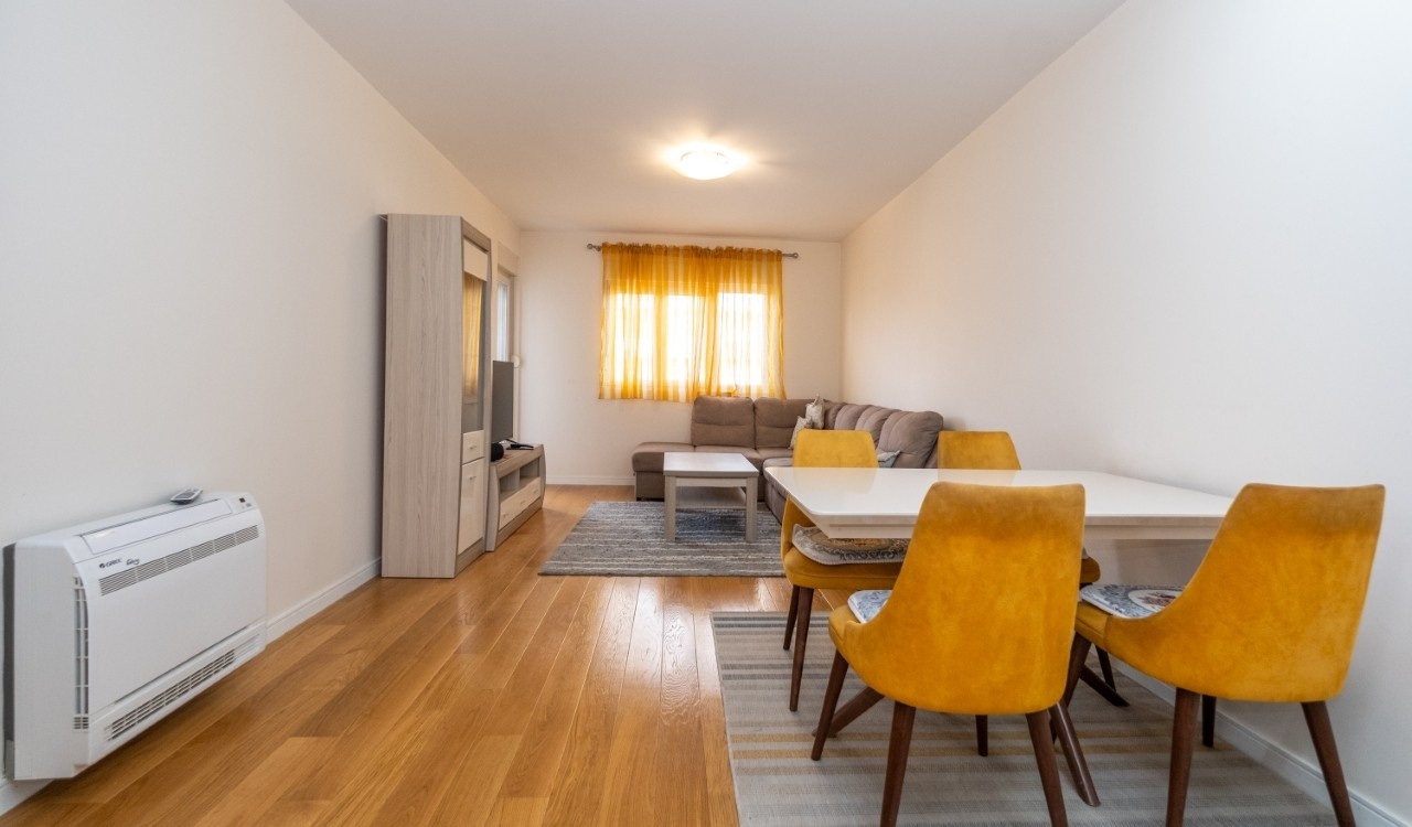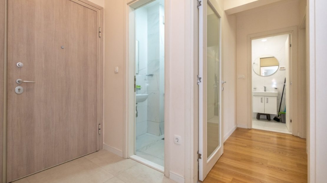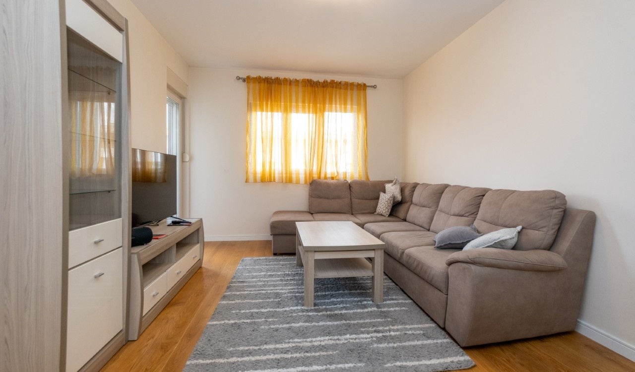 A modern and functional two bedroom apartment is located in the new Central Point complex in Podgorica.