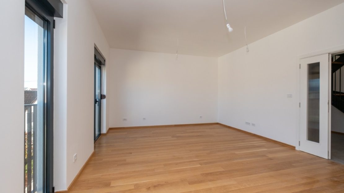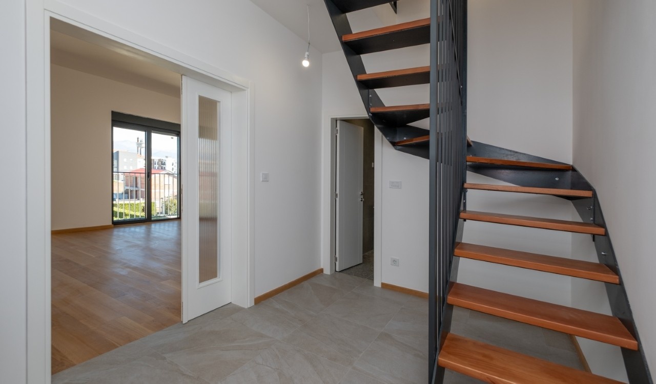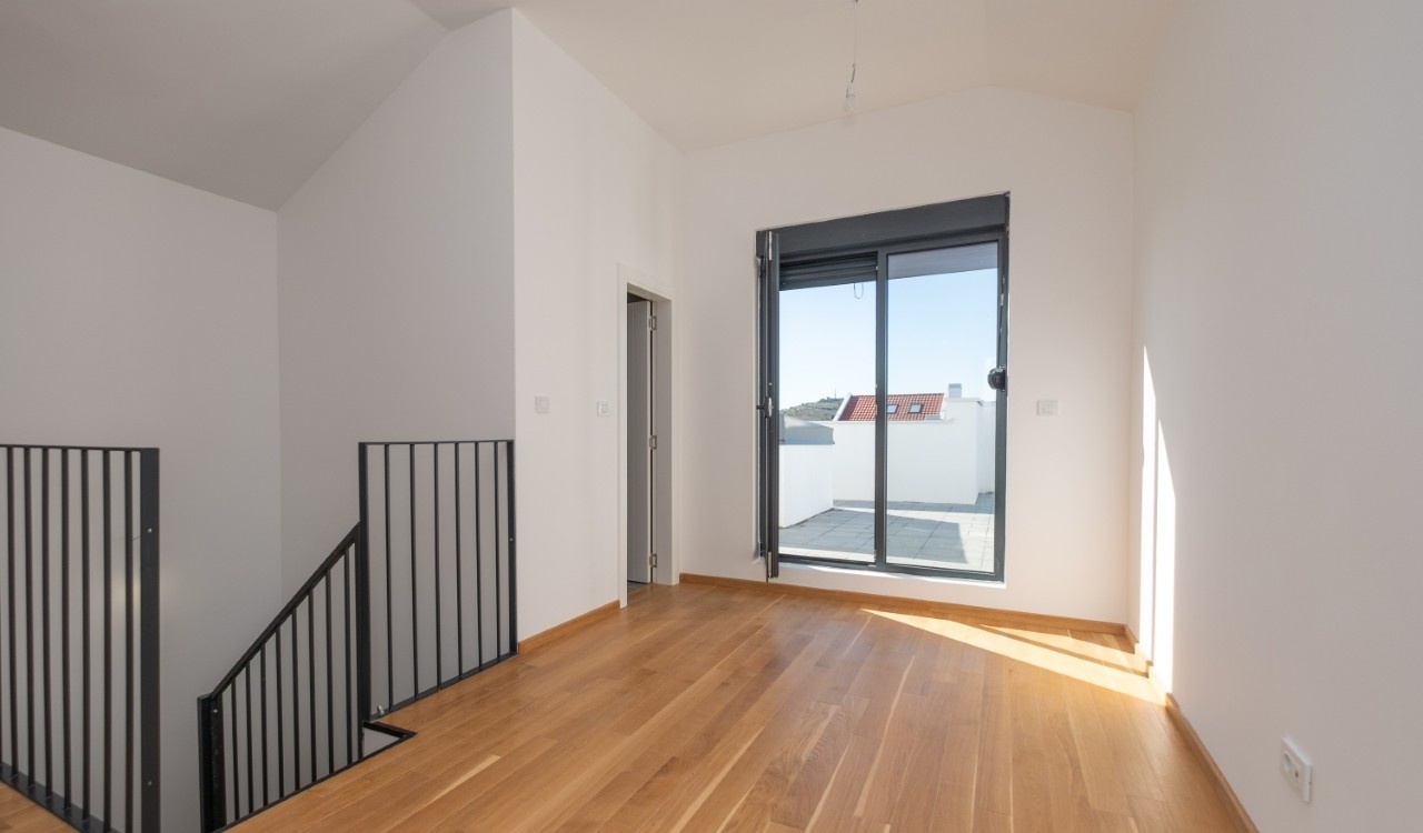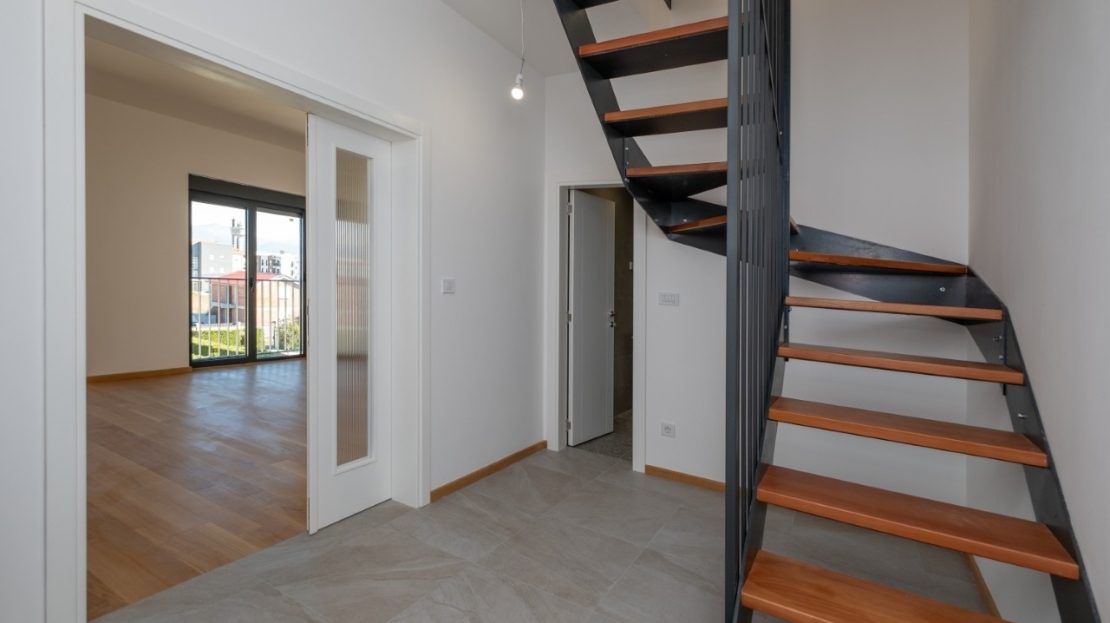 This duplex apartment of 113 sqm with a rooftop terrace is located in the exclusive residential complex “Cortex Selo”, on 8. Marta Street in Zabjelo.