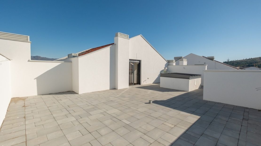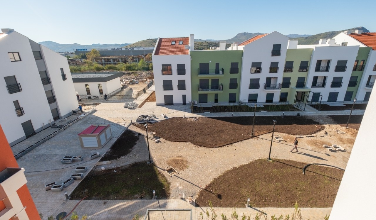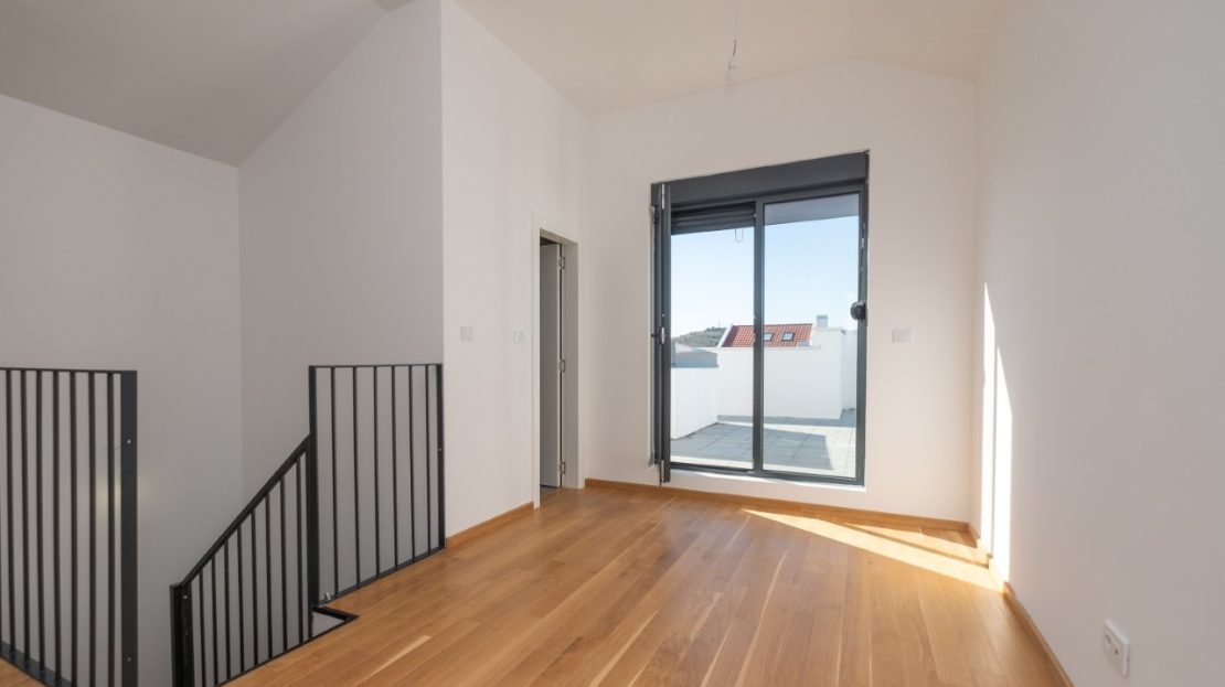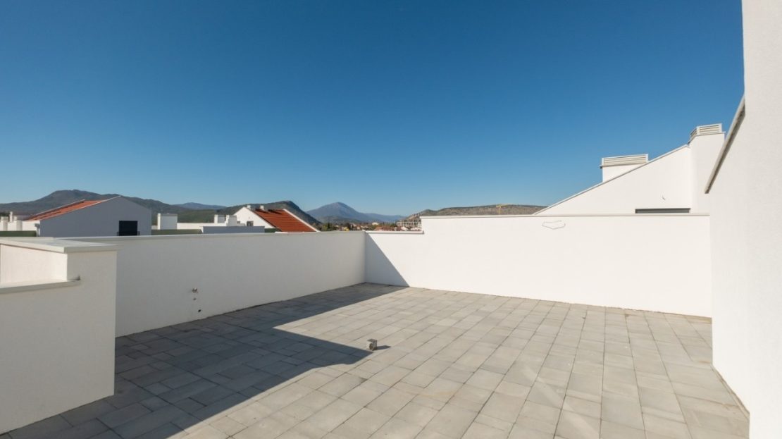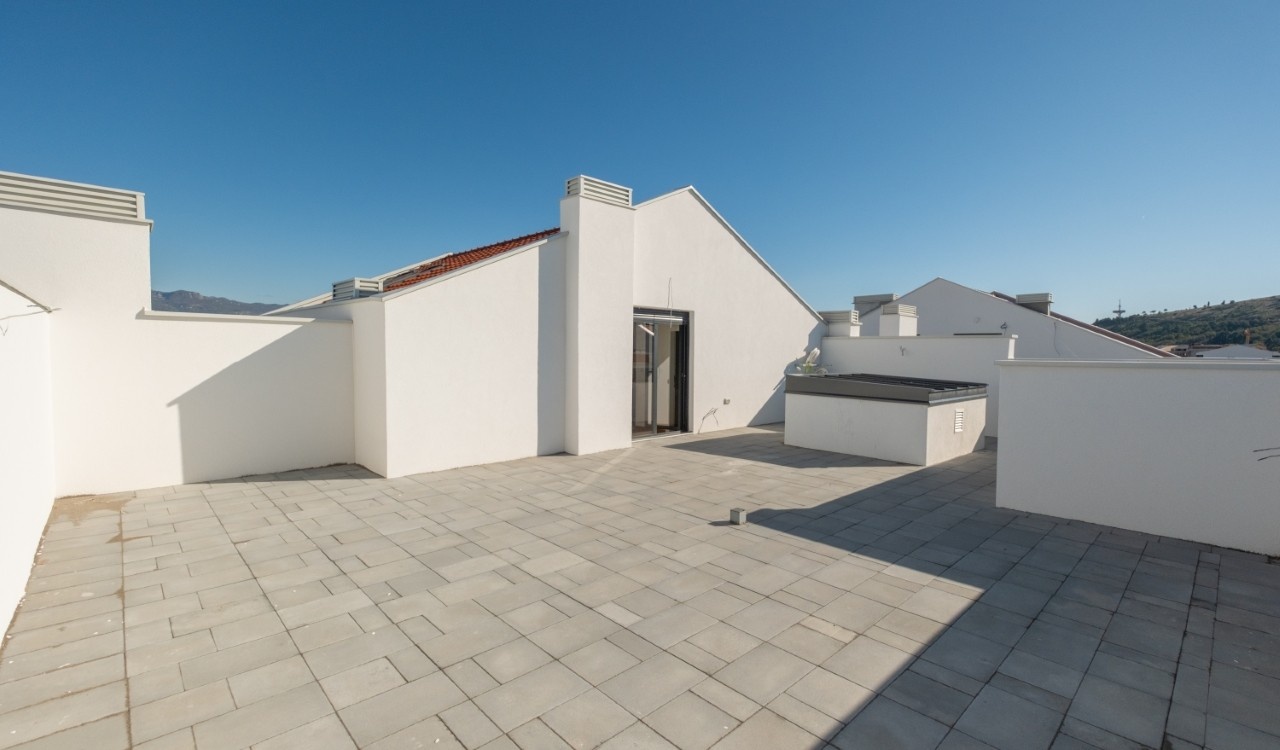 This duplex apartment of 113 sqm with a rooftop terrace is located in the exclusive residential complex “Cortex Selo”, on 8. Marta Street in Zabjelo.