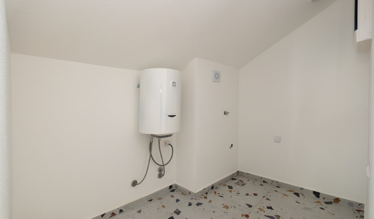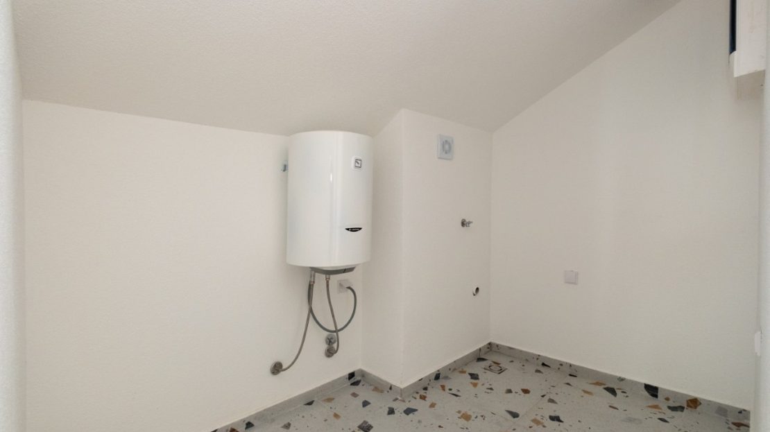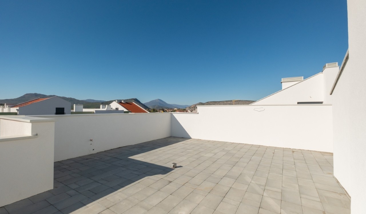 Entrance hallway, living room, separate kitchen and dining area, bathroom, staircase leading to the upper floor. - Second Level: Hallway, three bedrooms (one of which is a master bedroom with an en-suite bathroom), laundry room, an additional bathroom, and a rooftop terrace of 76 sqm, which is not included in the official floor area.