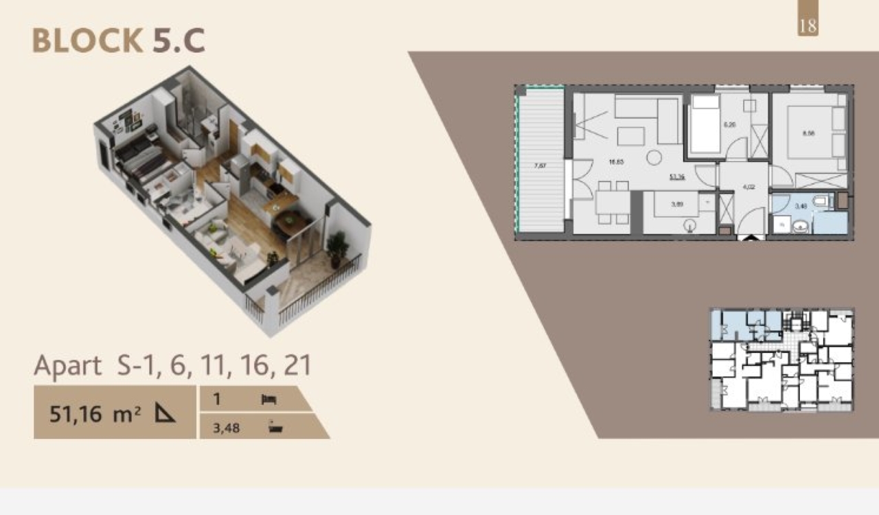This 52 sqm two bedroom apartment is located in Building C of a modern and luxurious residential complex in Tivat, in the highly sought-after Seljanovo area — just 500 meters from the sea and 1.5 km from the exclusive Porto Montenegro marina.