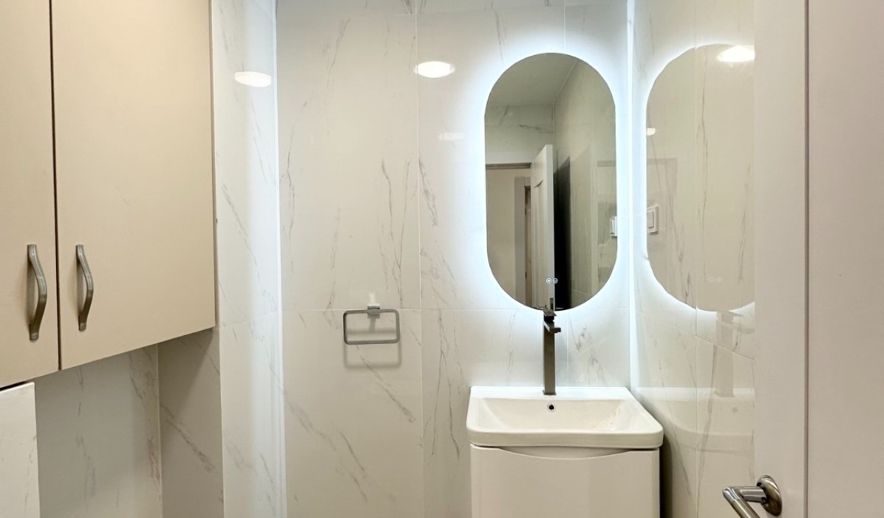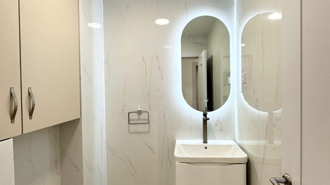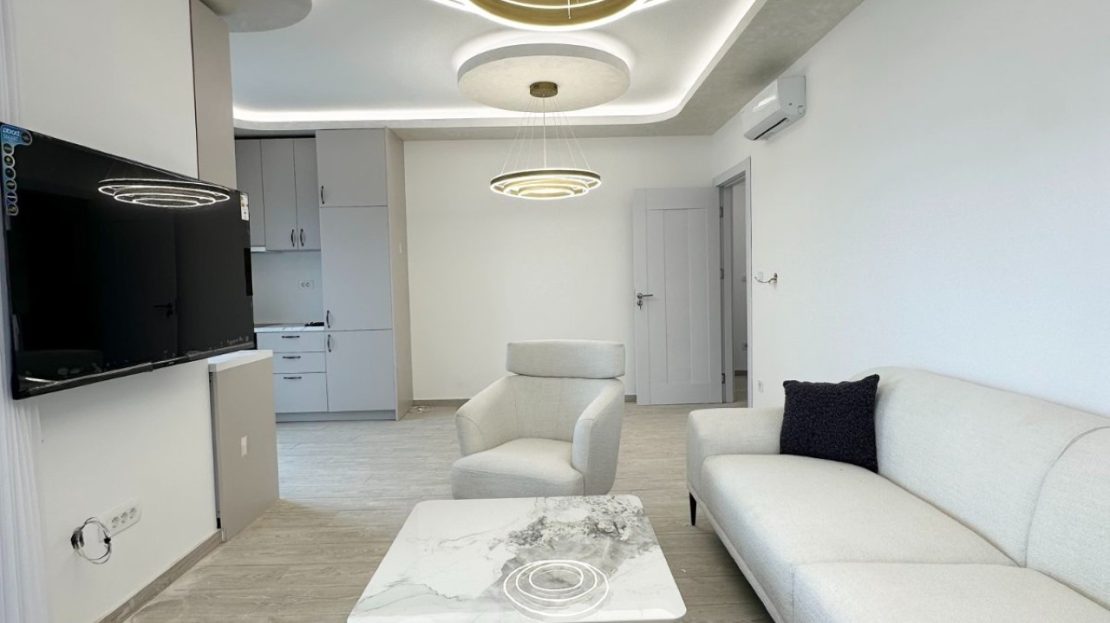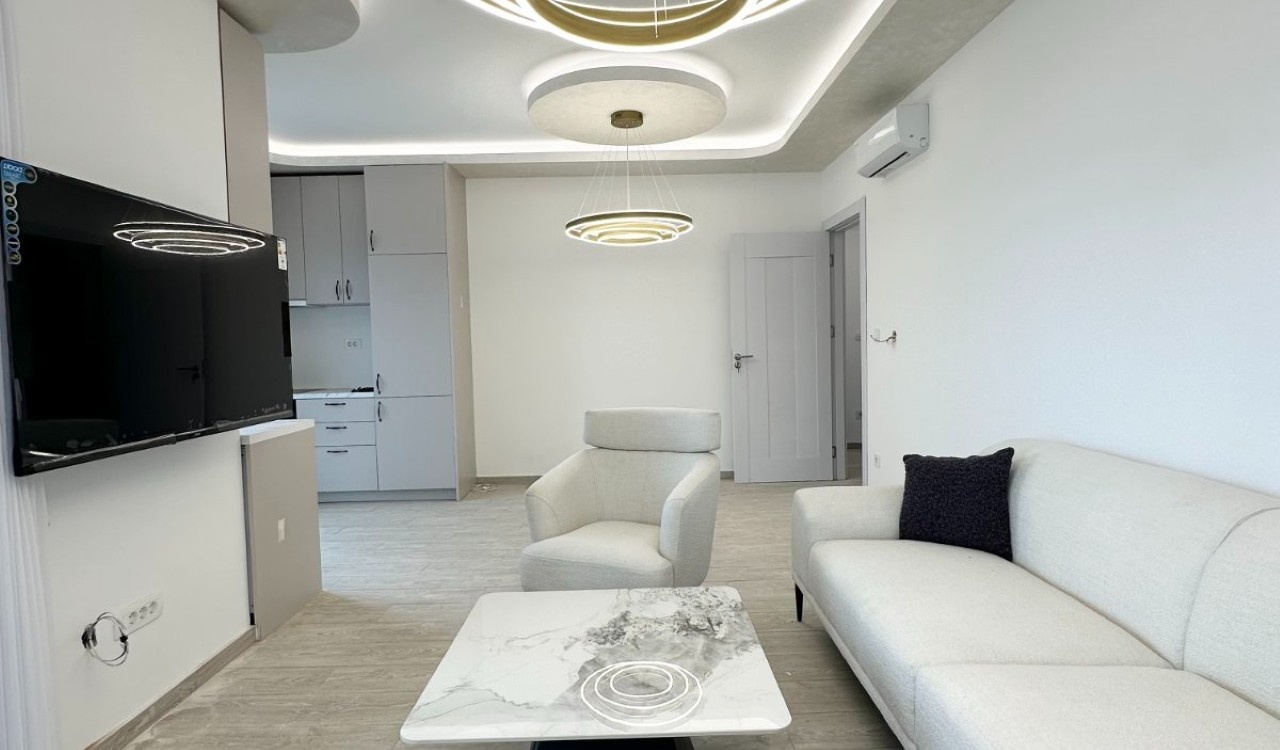 Ovaj dvosoban, luksuzno namješten stan sa pogledom na more ukupne površine 74m² nalazi se u većoj stambenoj zgradi Fab Live, u Bečićima i udaljen je svega 500m od mora.