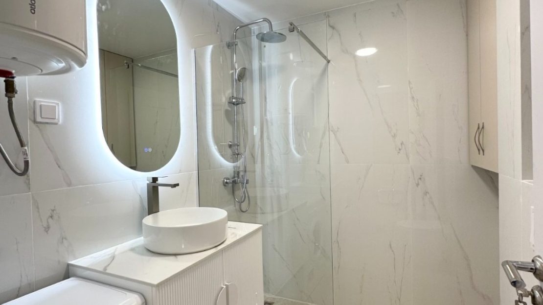 Struktura: prostran dnevni boravak u spoju s kuhinjom i trpezarijom, dvije spavaće sobe, dva kupatila, balkon.
