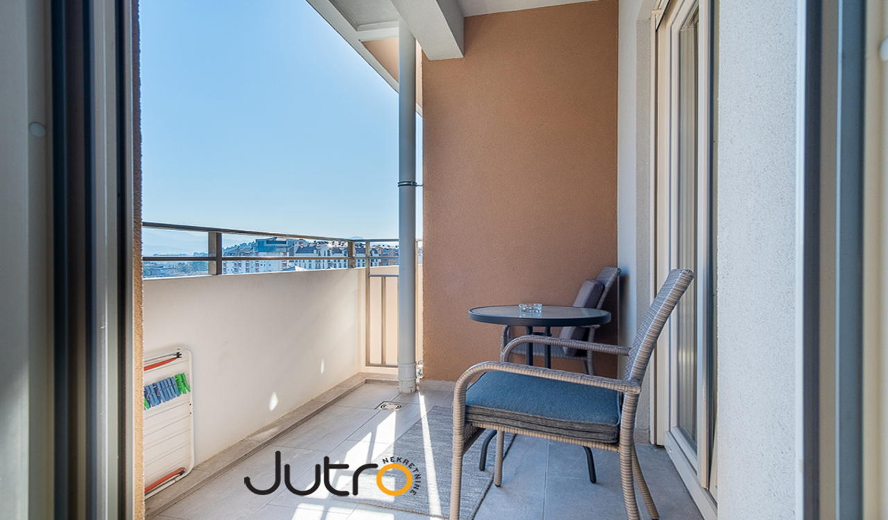 Površin stana 50m². Nalazi se u prvoj izgrađenoj zgradi, pozicioniran je na četvrtom spratu, južno orijentisan.