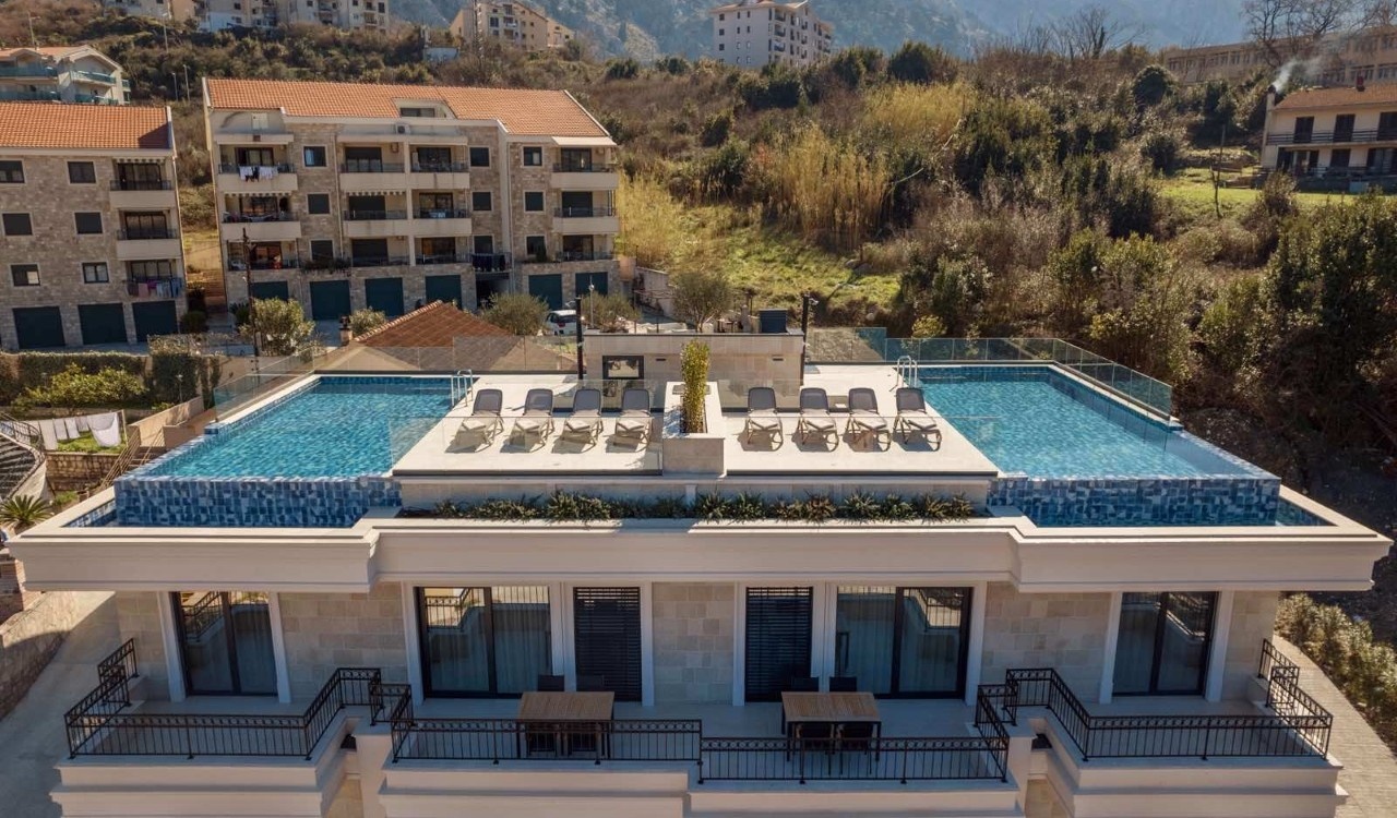 Ova zgrada smještena je na jednoj od najtraženijih lokacija u Boki Kotorskoj, svega 2 km od Starog Grada.