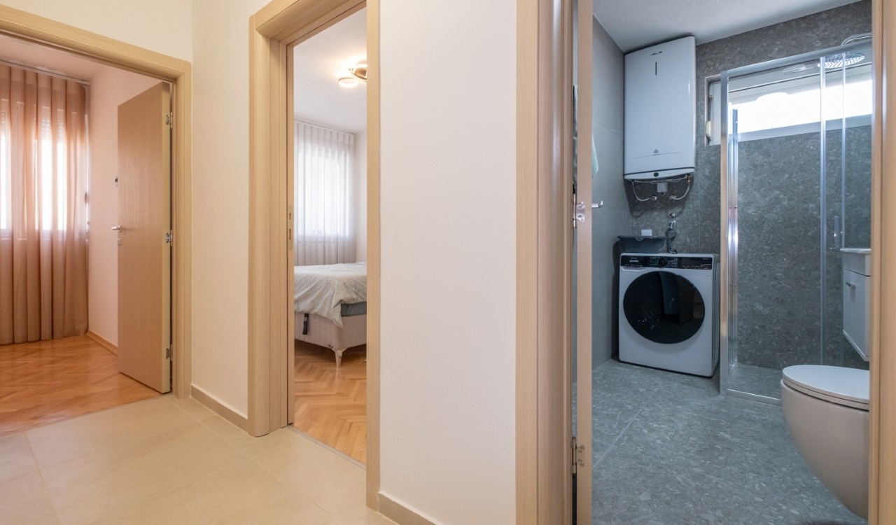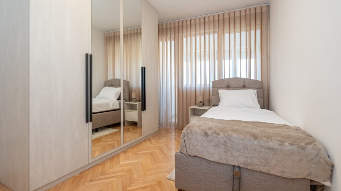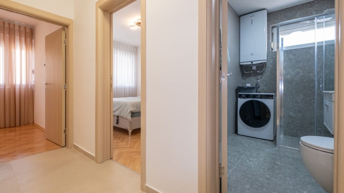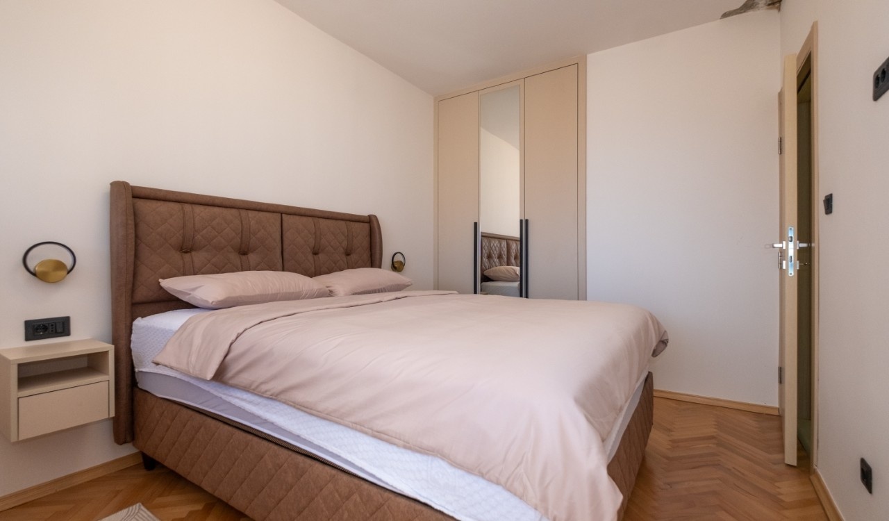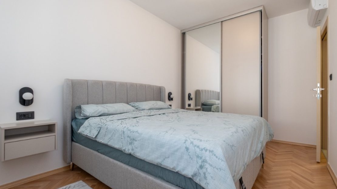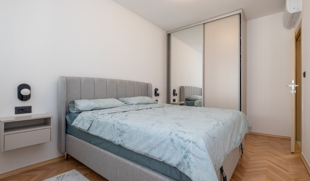 Izdaje se kompletno renoviran i moderno opremljen trosoban stan ukupne površine 101 m², smješten u atraktivnom dijelu grada Preko Morače, u Podgorica, na 5. spratu stambene zgrade sa liftom.