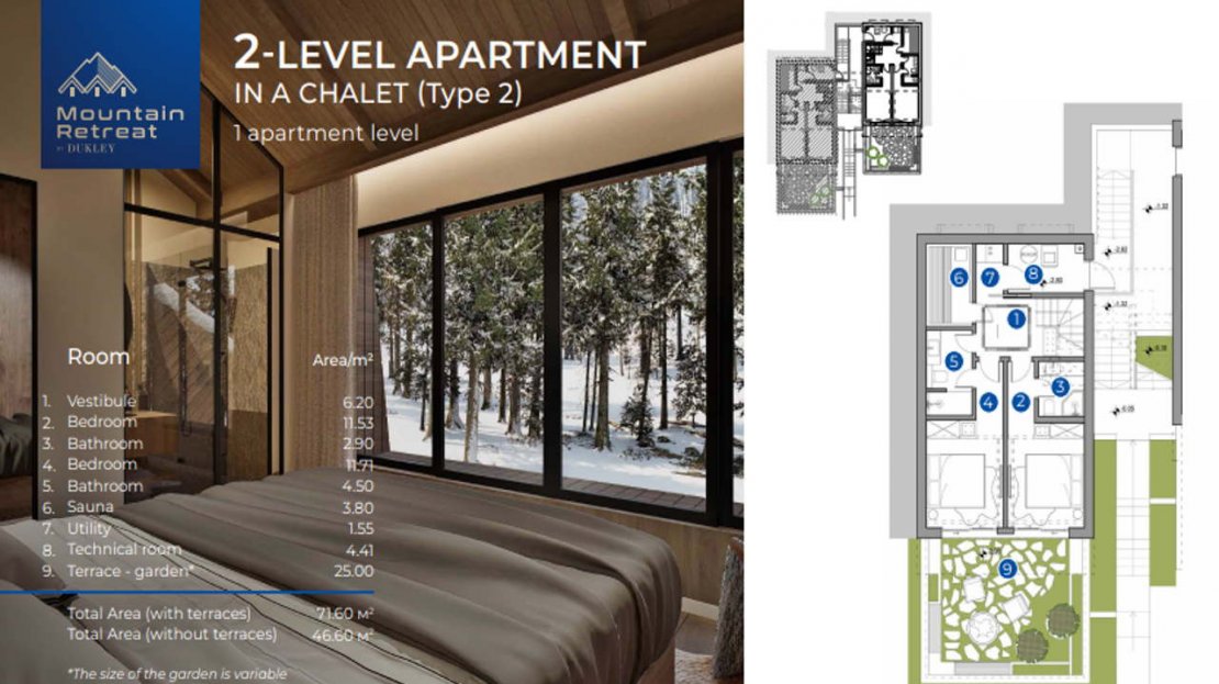Svi apartmani u planinskim kućama i hotelskim sobama u MOUNTAIN RETREAT-u se prodaju kompletno završeni. Osnovni paket uključuje dizajn enterijera u elegantnom stilu.