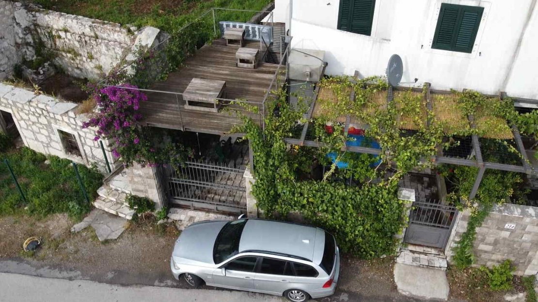 Stepeništem se iz dvorišta stiže se do izdignute terase, površine oko 25m² (natkriva dio dvorišta), koja pruža predivan pogled na zaliv, a ljeti je pogodna za sunčanje i odmor.