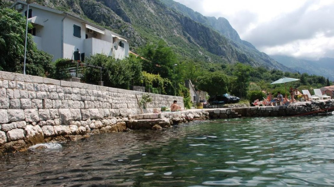Kotor, Dobrota – Trosoban stan s dvorištem na prvoj liniji do mora, prodaja