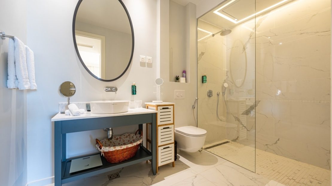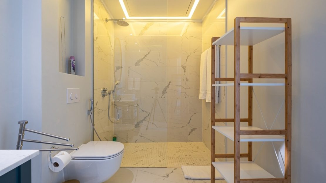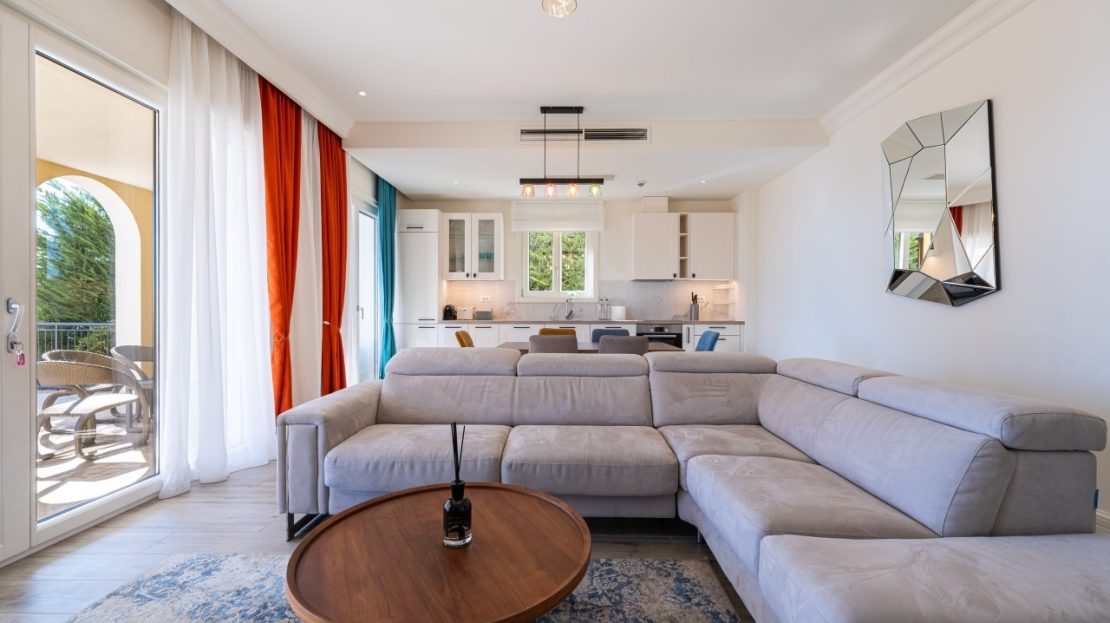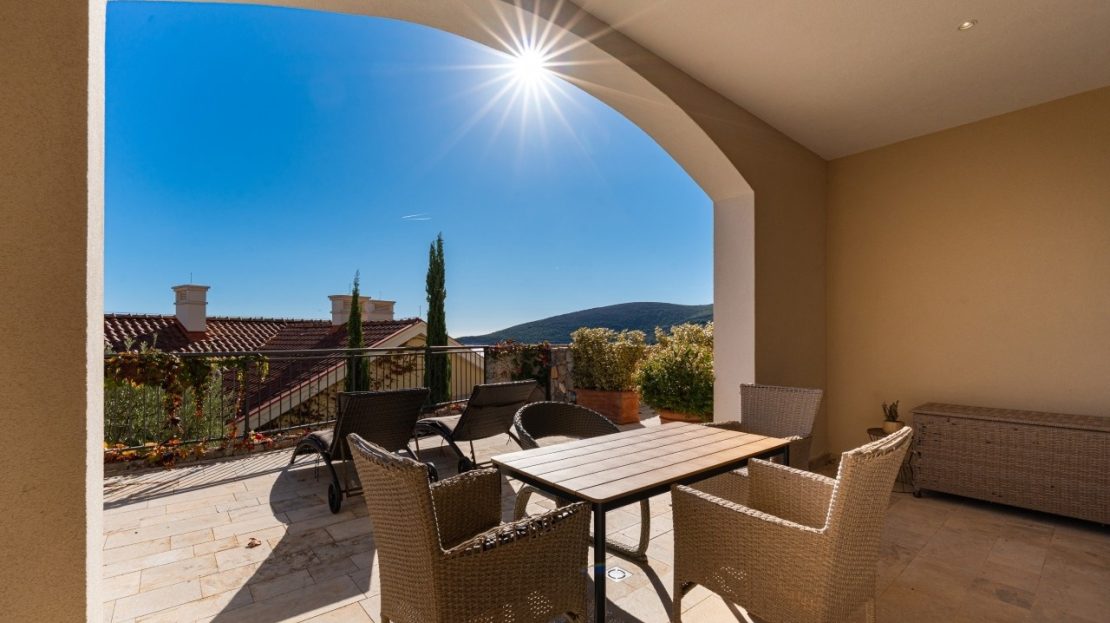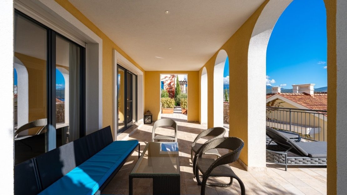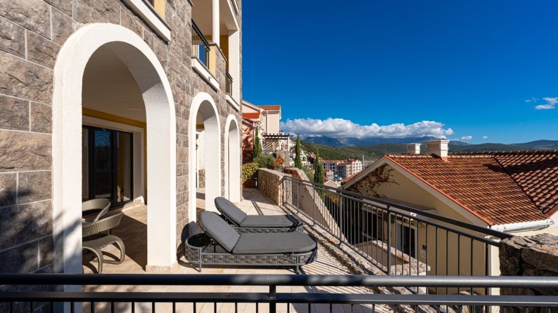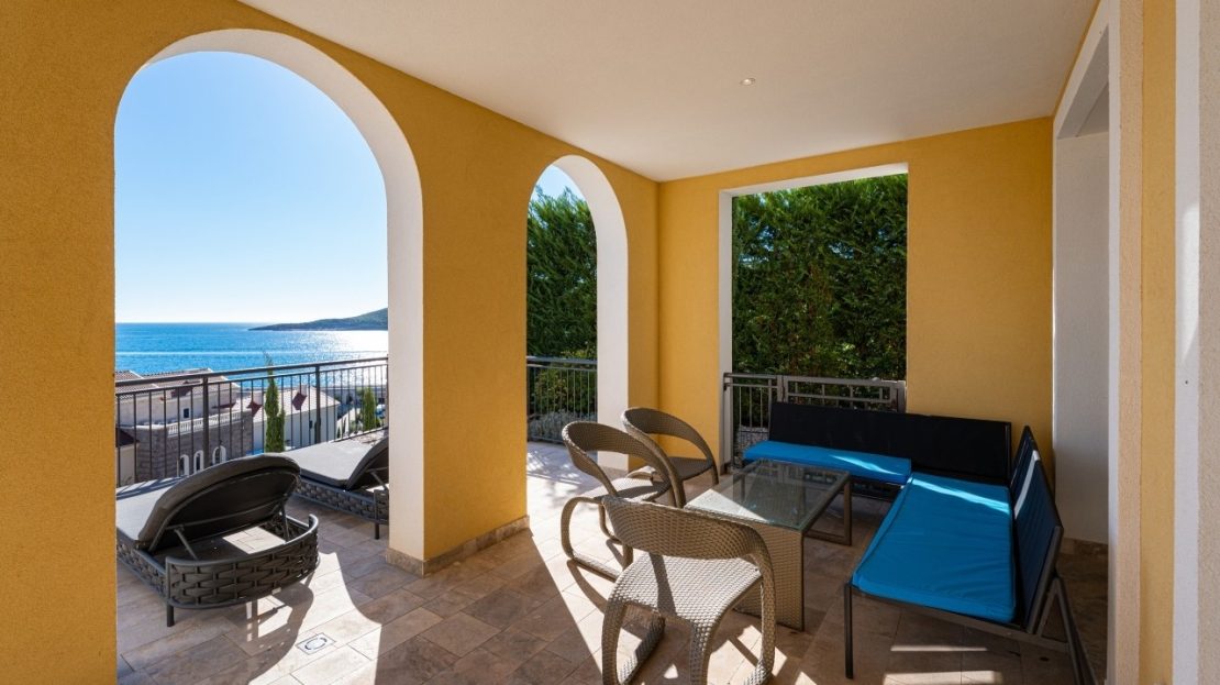 Prvi stan, površine 113 m², ima dvije spavaće sobe, prostran dnevni boravak sa trpezarijom i kuhinjom, dva kupatila i natkrivenu terasu sa panoramskim pogledom na more.