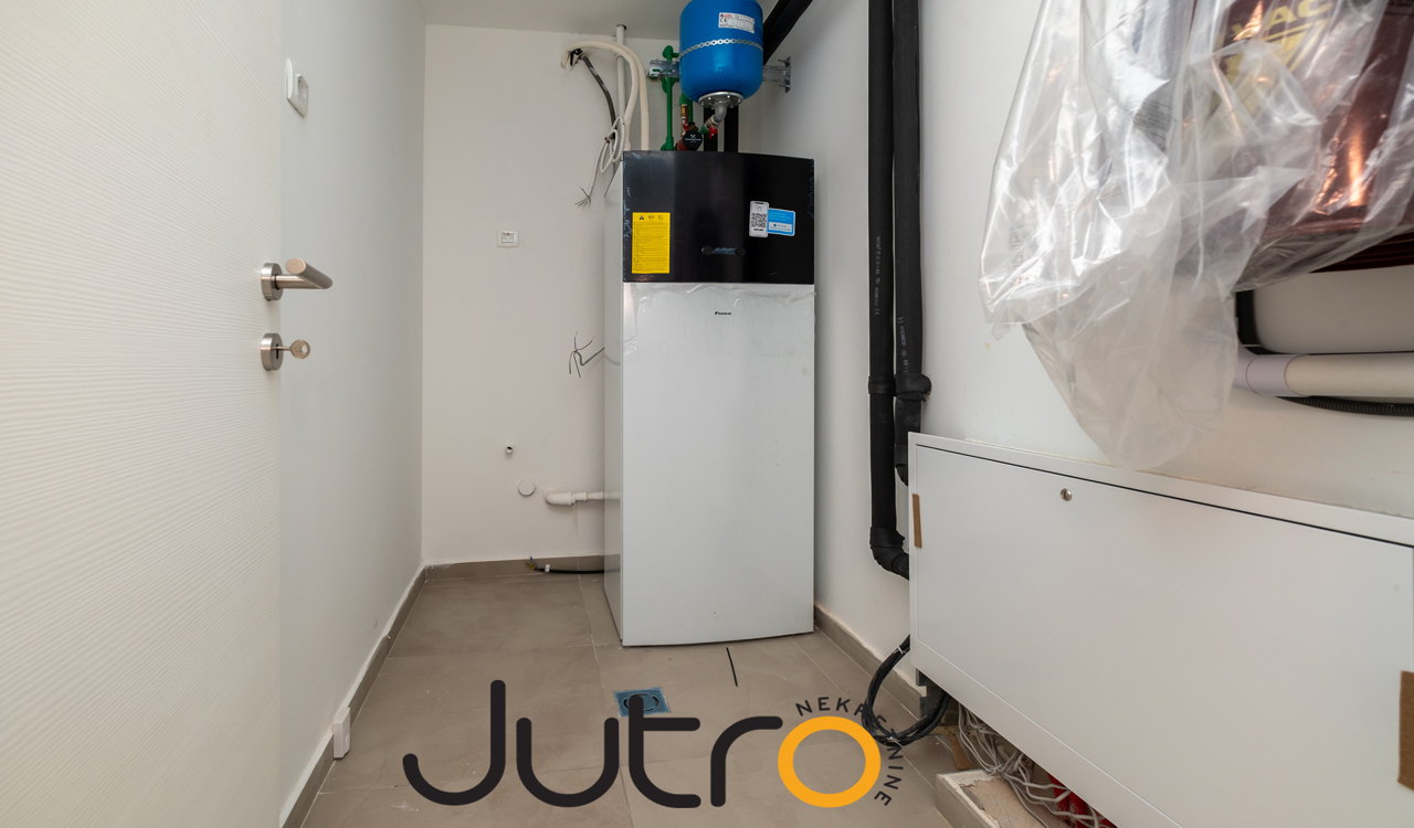 Uključuje podplafonske jedinice klima koje neće biti vidljive u prostoru, toplovodno podno grijanje u kompletnom stanu, kao i pripremu sanitarne tople vode u bojlerima koji su priključeni na isti sistem. Ovaj sistem je brenda DAIKIN koji pokreću ALTHERMA toplotne pumpe koje se nalaze u dvorištu van objekta i samim tim ne zauzimaju prostor i ne prave buku i vibracije. Ovakav premium sistem obezbjeđuje sve gore pomenuto uz minimalnu potrošnju električne energije.
