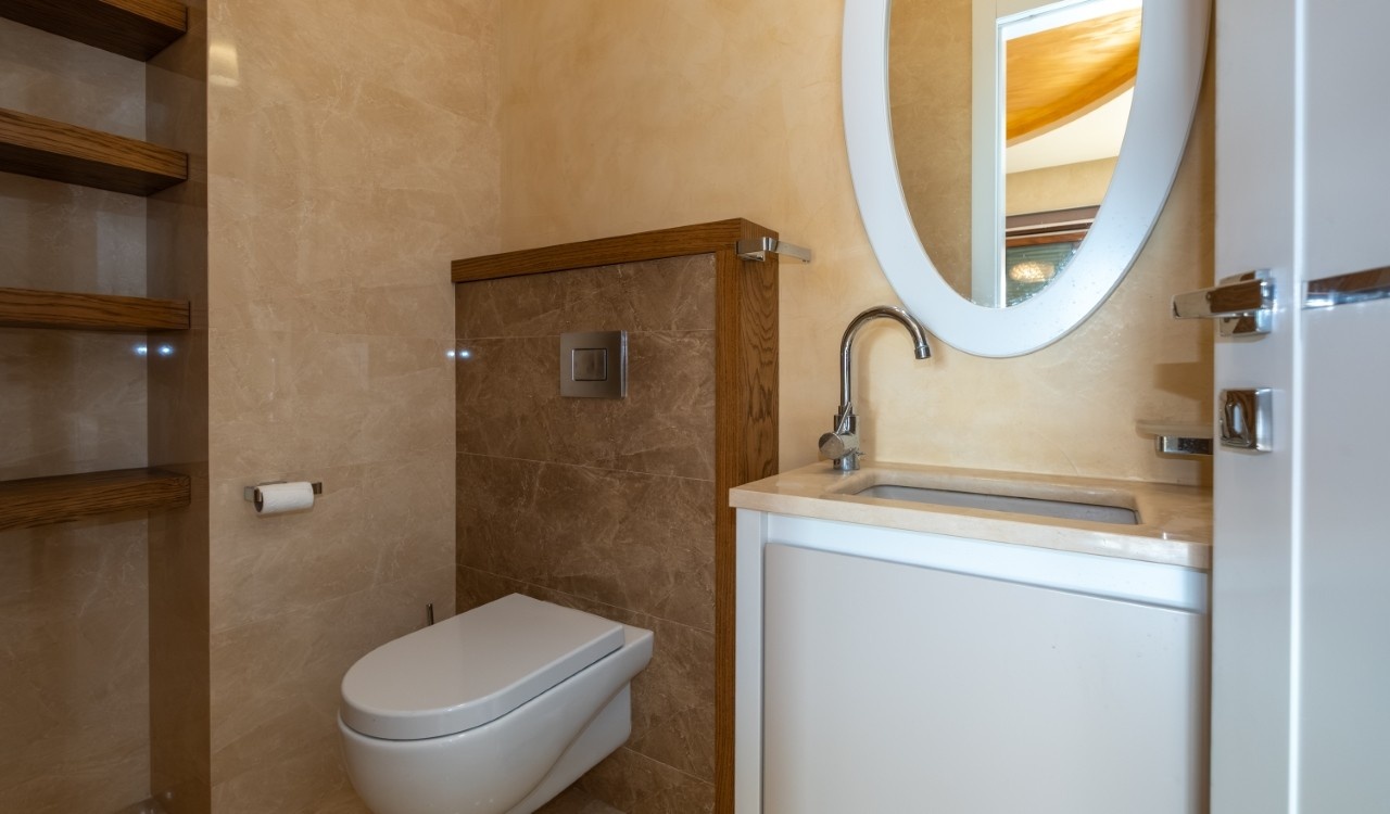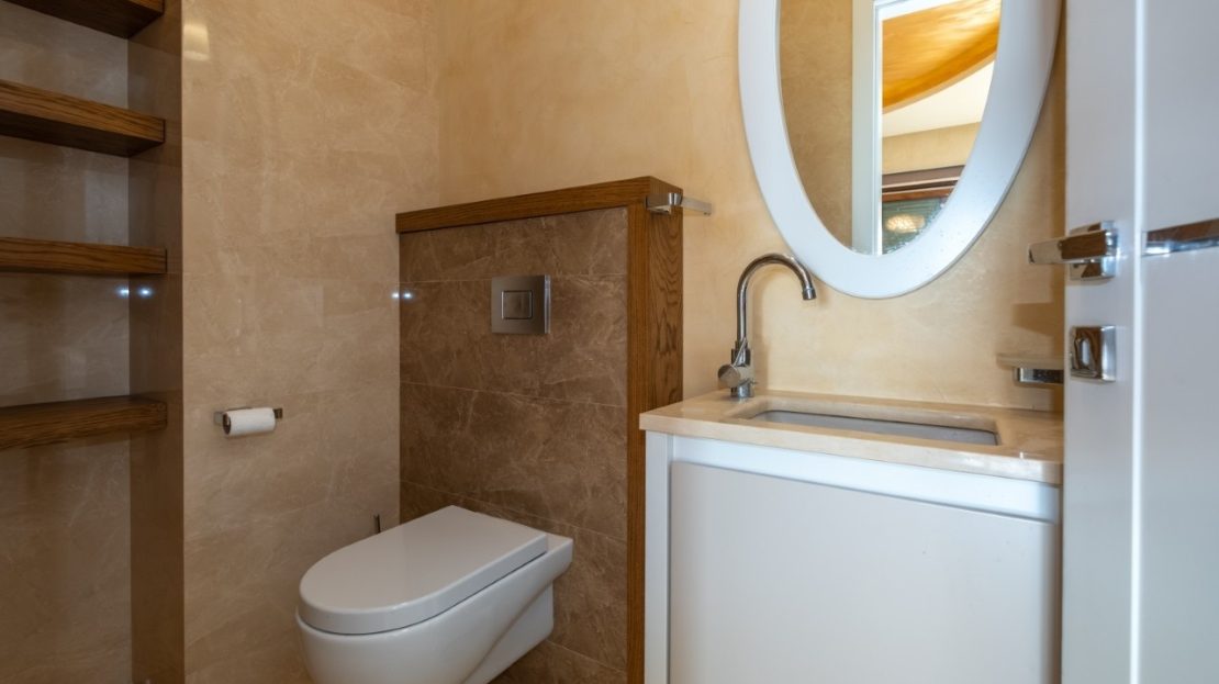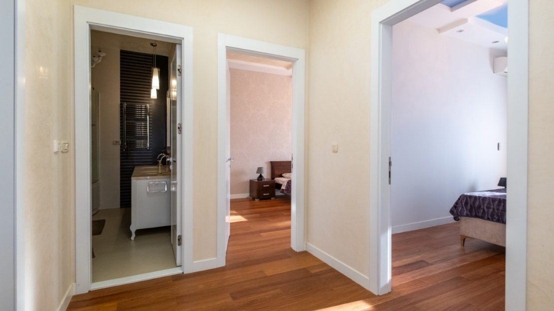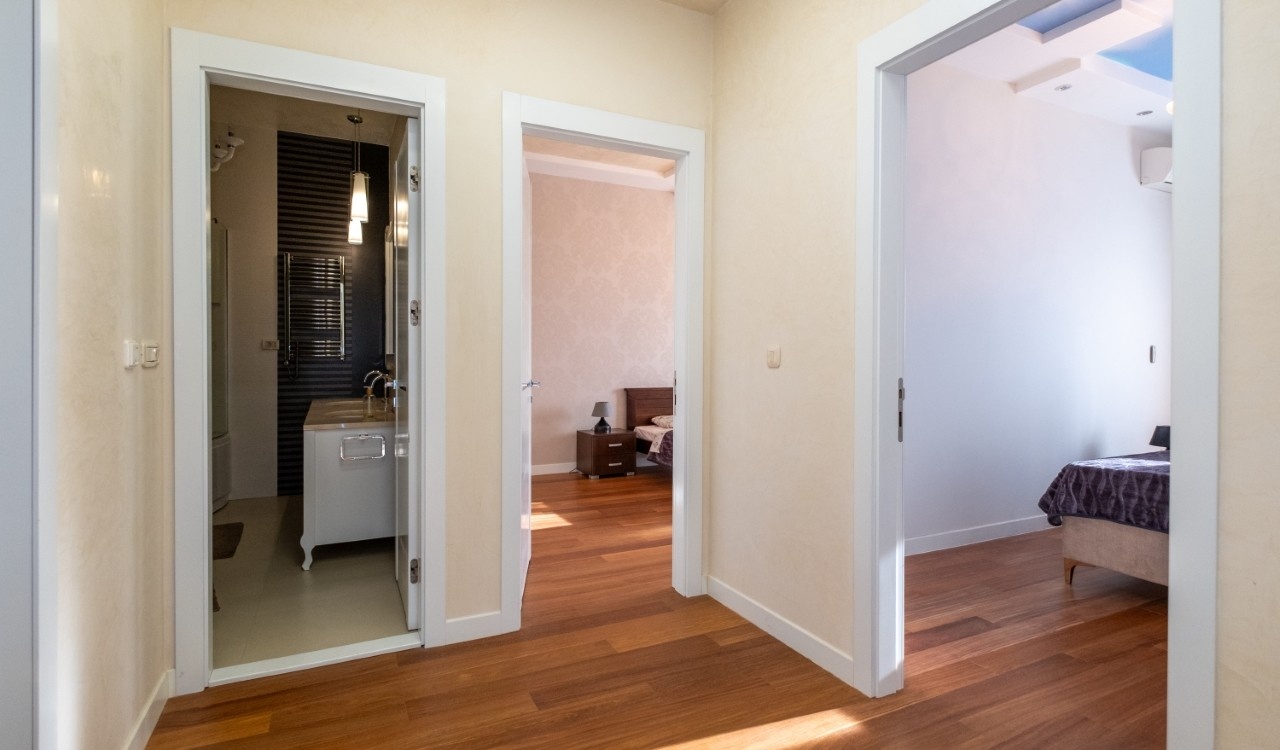 Stan raspolaže sa tri spavaće sobe, dva kupatila, dodatnim toaletom za goste, garderoberom, ulaznim holom i ostavom.