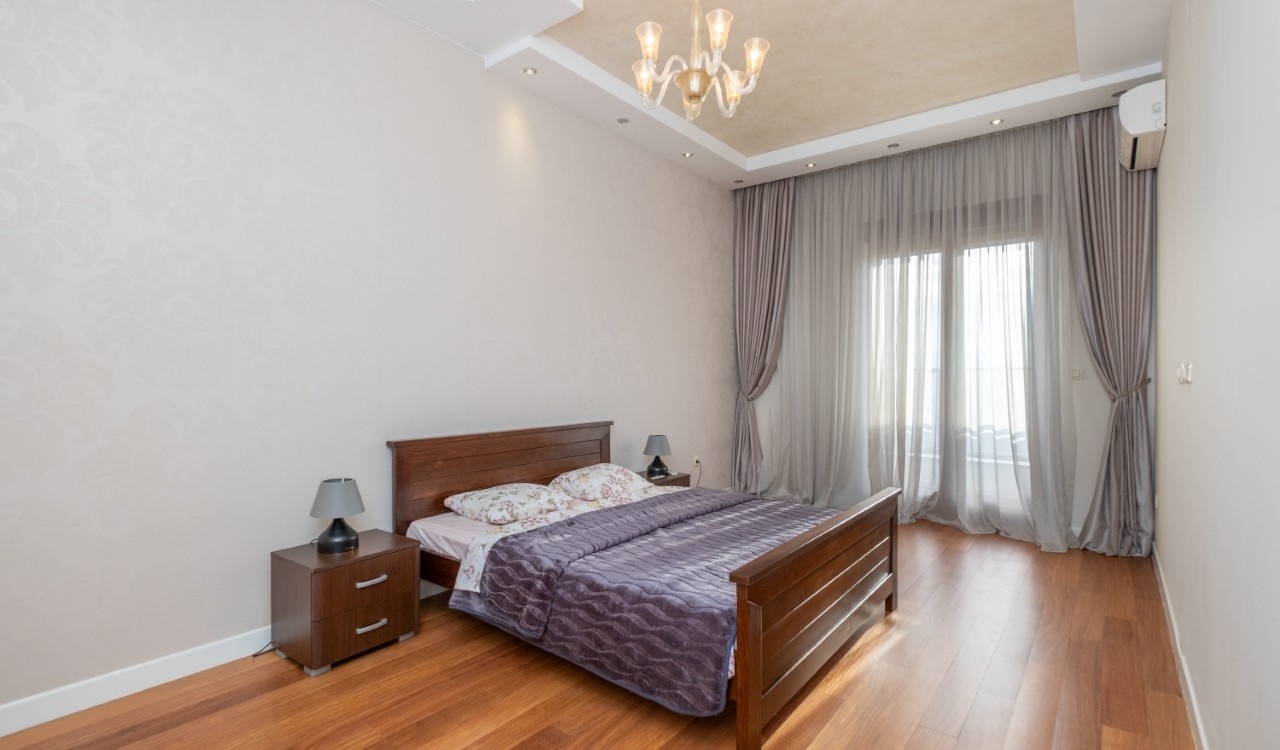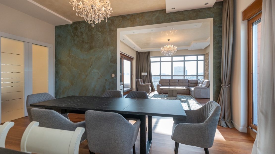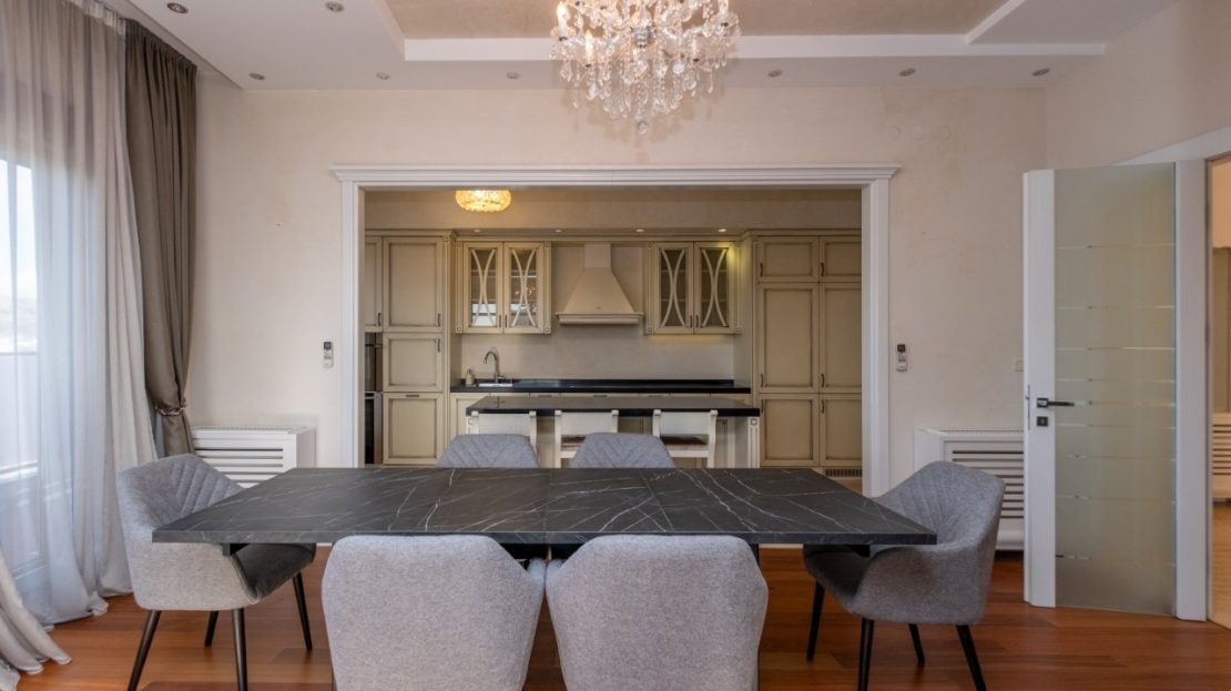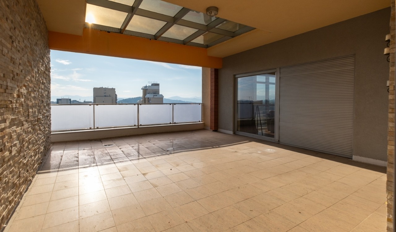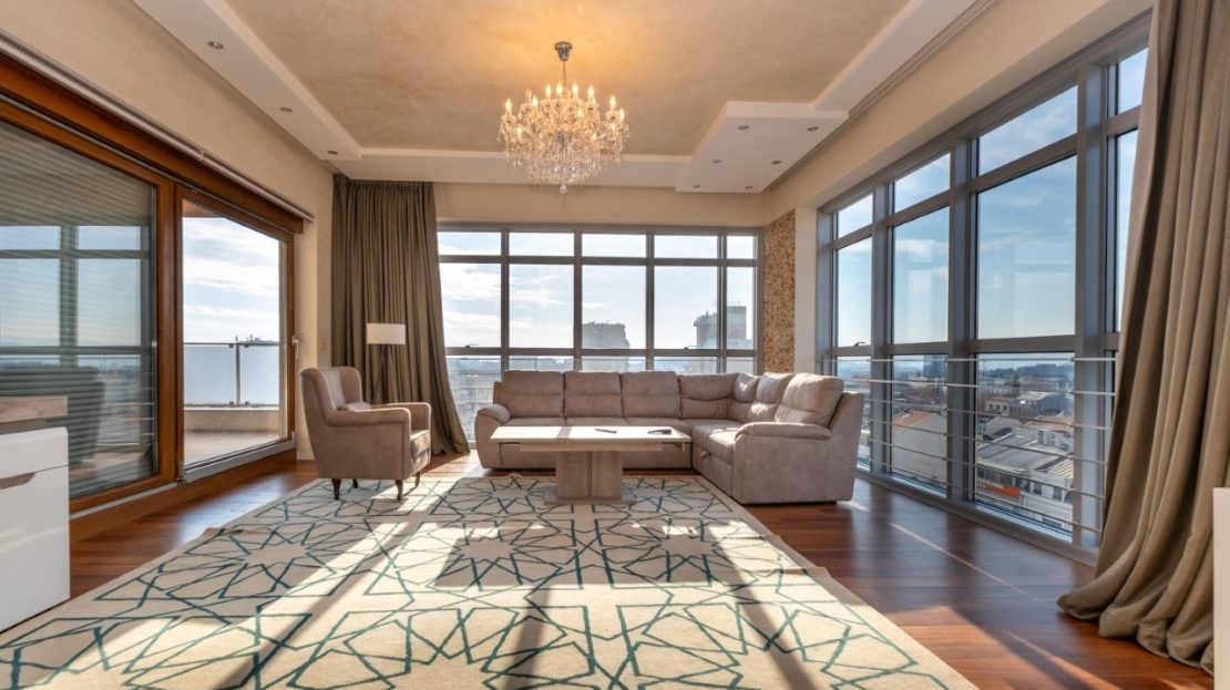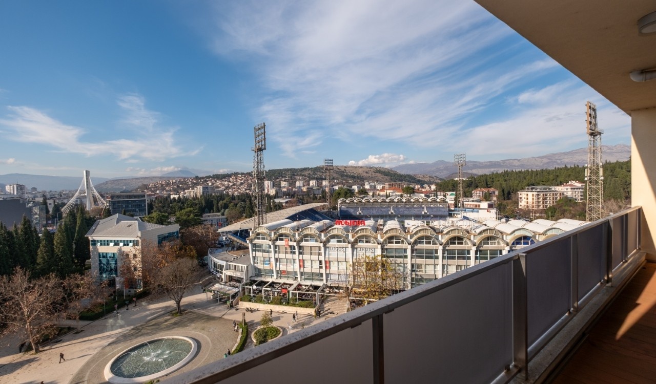 Izdaje se ekskluzivan, luksuzno namješten penthouse sa tri spavaće sobe, smješten u samom centru Podgorice. Stan se nalazi na 7. spratu i prostire se na impresivnih 275 m², uz ukupno tri prostrane terase, od kojih je jedna površine oko 50 m² sa otvorenim panoramskim pogledom na grad.
