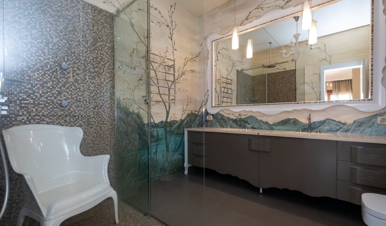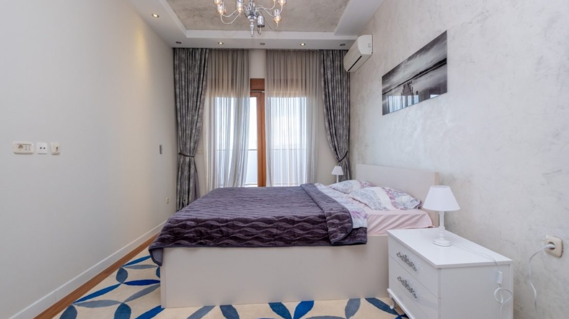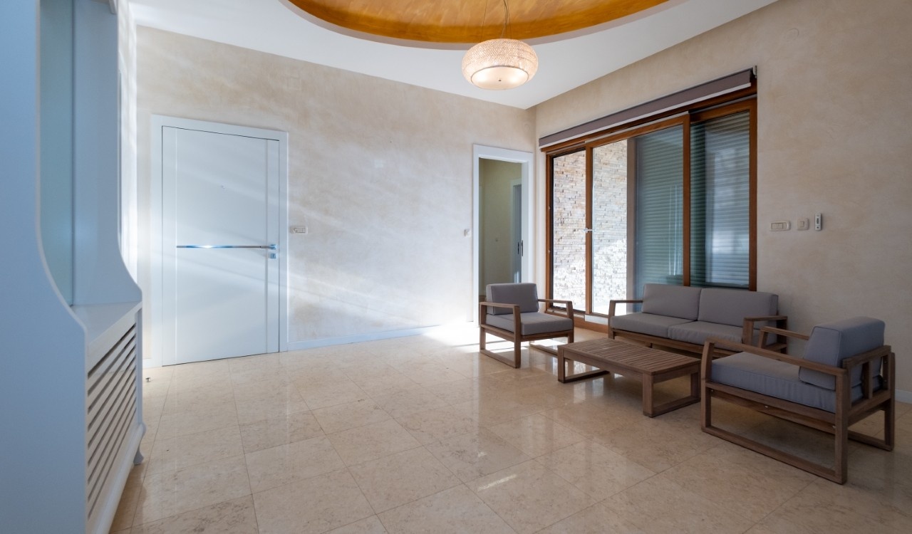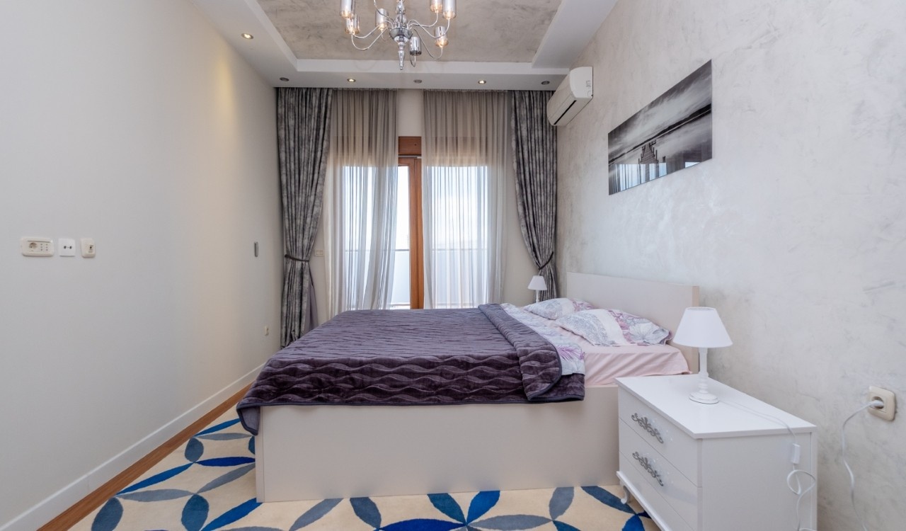 Enterijer je pažljivo dizajniran, sa naglaskom na komfor, funkcionalnost i eleganciju. Dnevni boravak, trpezarija i kuhinja čine otvorenu cjelinu ispunjenu prirodnim svjetlom zahvaljujući staklenim portalima od poda do plafona. Kuhinja je kompletno opremljena aparatima vrhunskog kvaliteta.