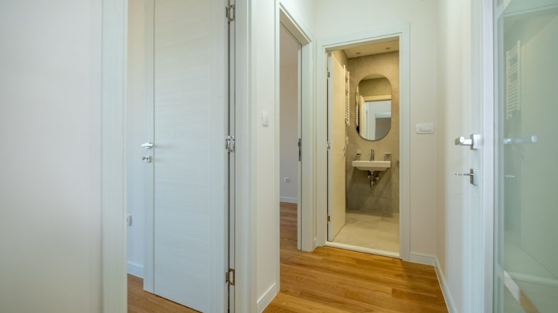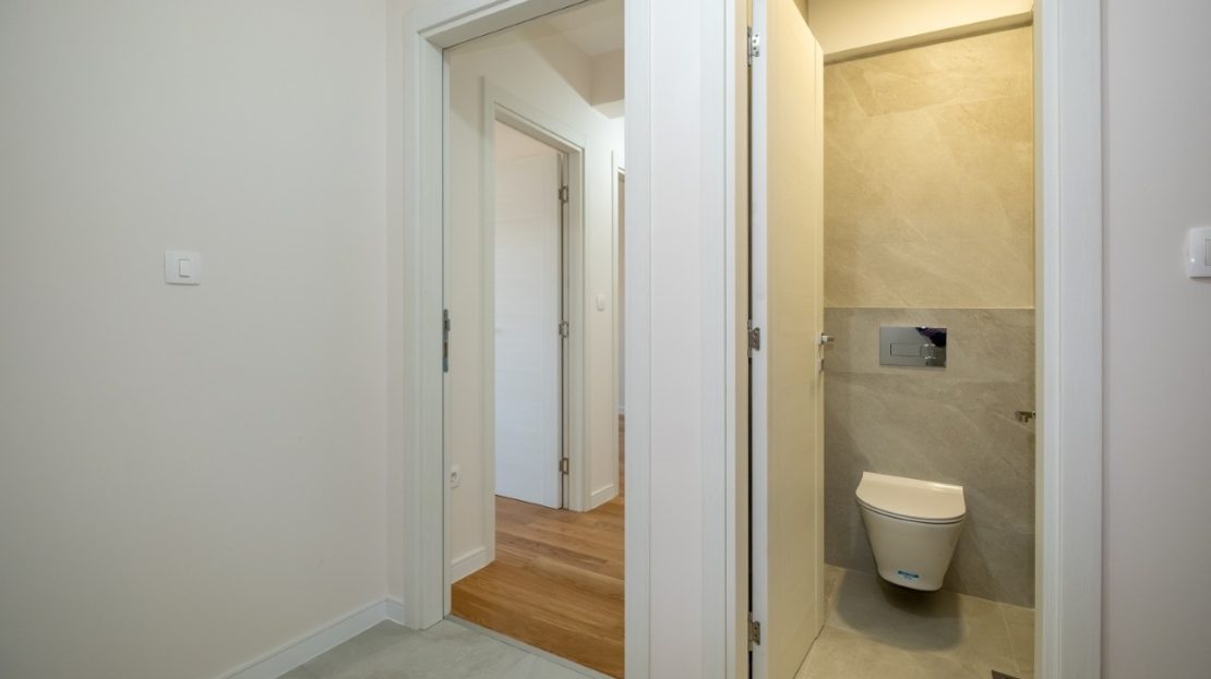 Struktura: ulazni hodnik, dnevni boravak, dvije spavaće sobe, kupatilo, toalet, terasa.
