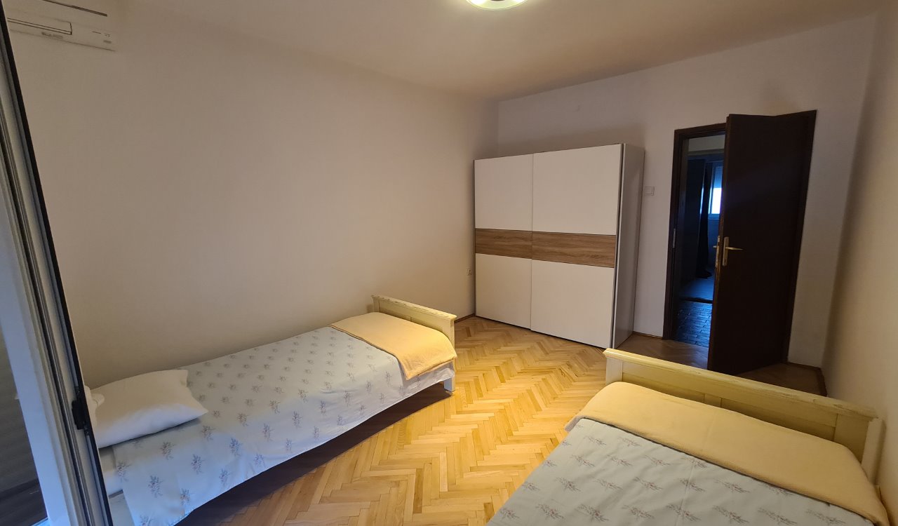 Izdaje se dvosoban, namješten stan u sklopu kuće u Dalmatinskoj ulici. Pozicioniran je na prvom spratu, sa zasebnim ulazom. Sastoji se od ulaznog hodnika, dnevnog boravka, dvije spavaće sobe, odvojene kuhinje i trpezarije, kupatila, dvije terase.