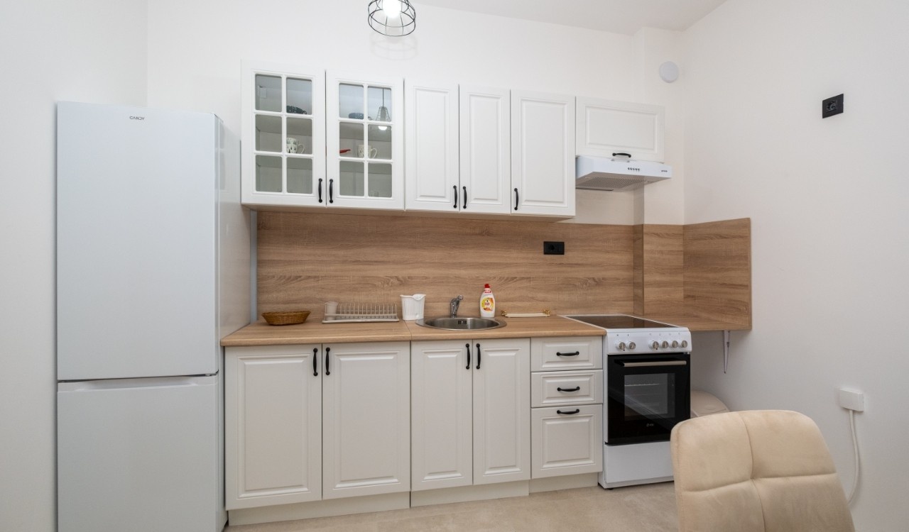 Funkcionalan raspored: dnevna zona sa kuhinjom i trpezarijom + odvojena spavaća soba.