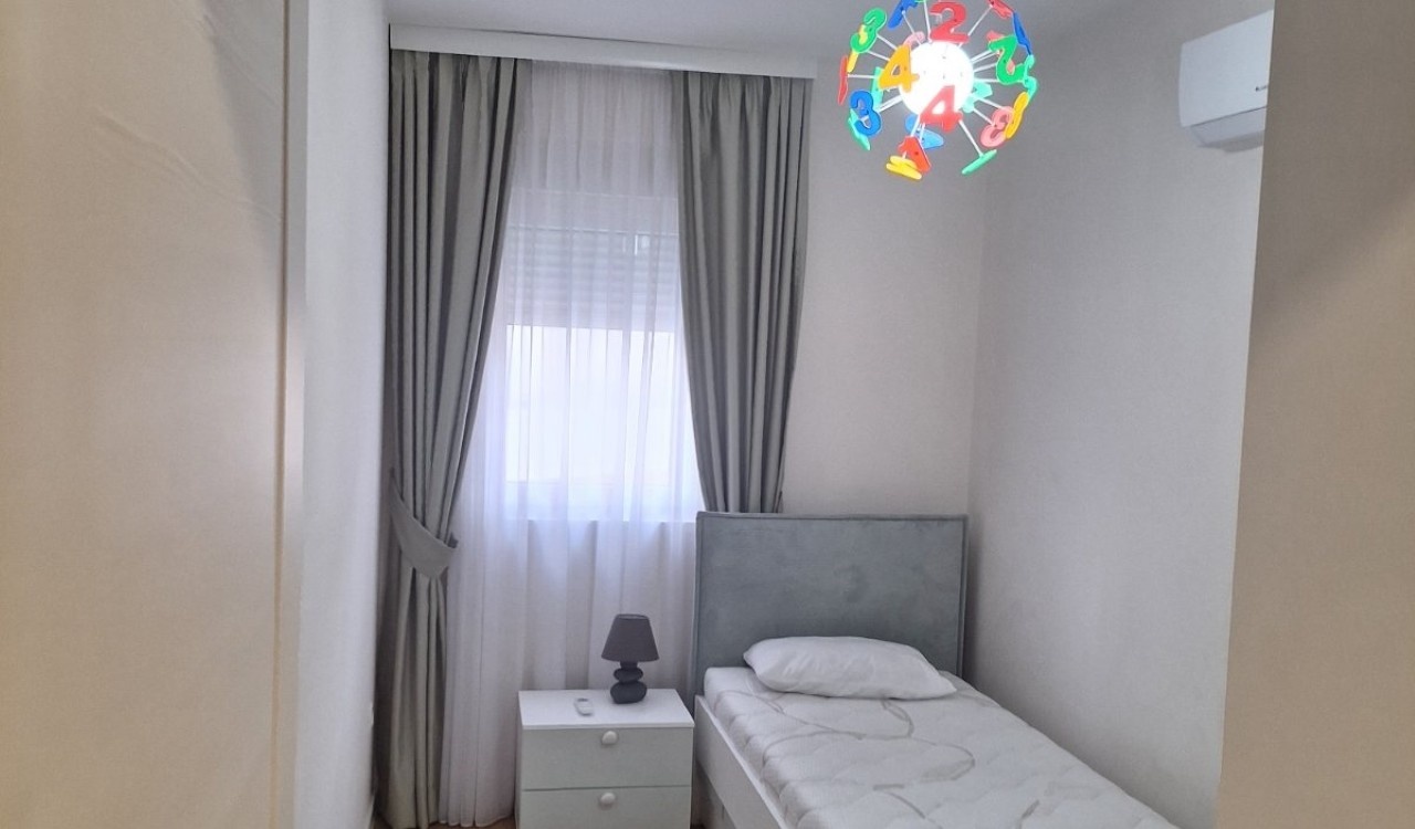 Izdaje se luksuzno namješten trosoban stan sa tri spavaće sobe, ukupne površine 94 m², smješten na trećem spratu moderne novogradnje u naselju Central Point, Podgorica.