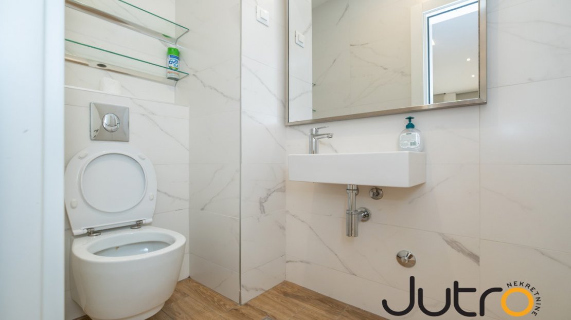 Dvosoban, luksuzno opremljen stan površine 74m², pozicioniran na trećem spratu, južno orijentisan.