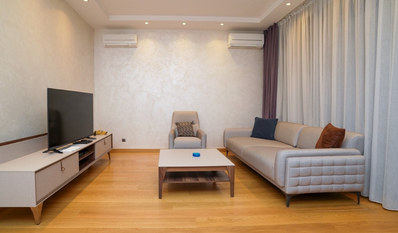 Ovaj dvosoban, luksuzno opremljen stan površine 80 m² nalazi se u Kips zgradi, na Ankarskom bulevaru.