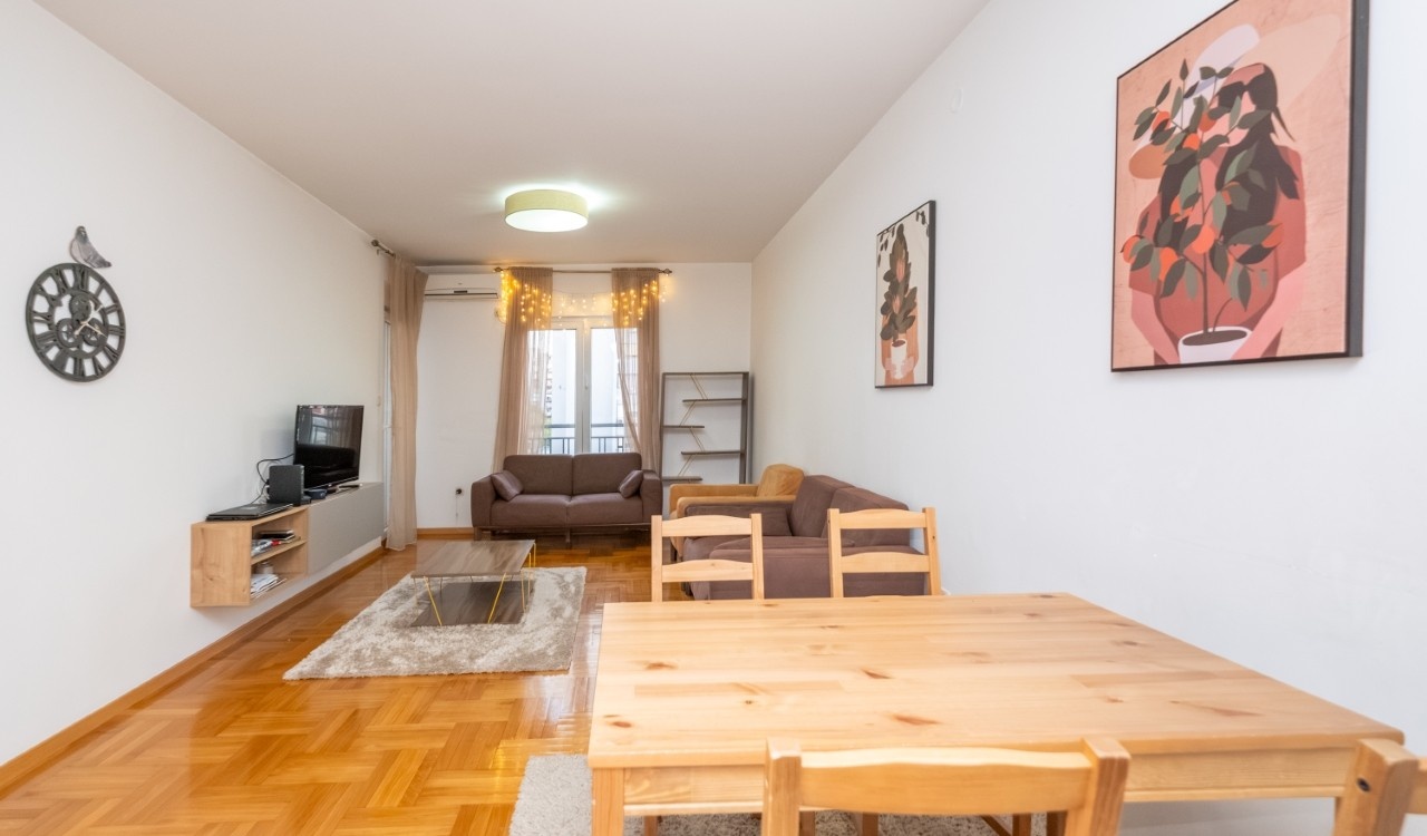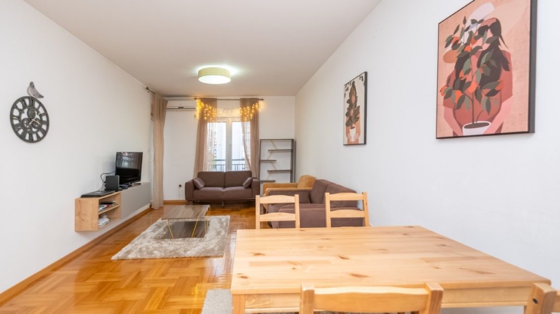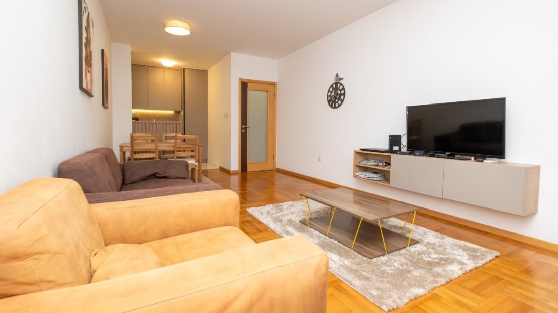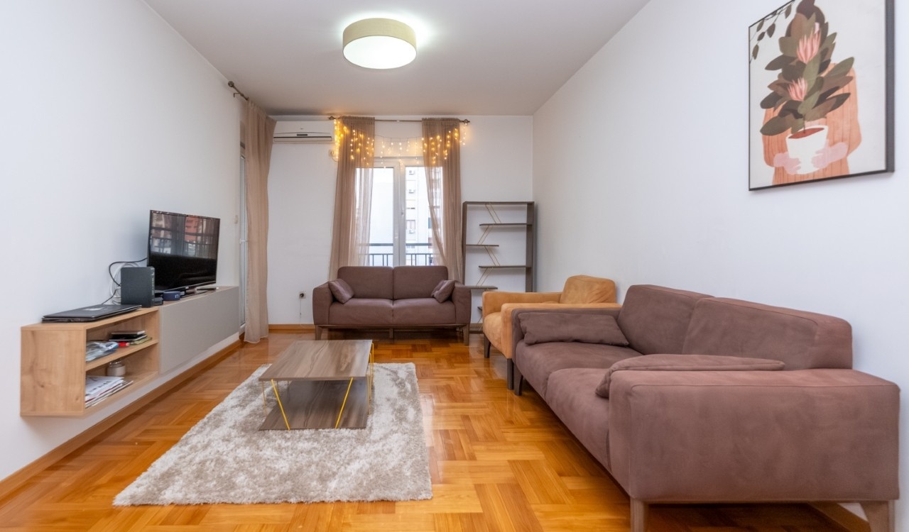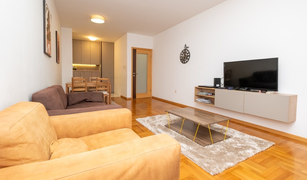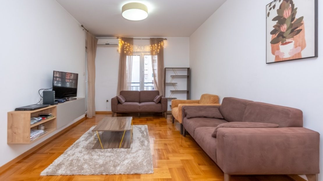 Ovaj jednosoban, kompletno namješten stan površine 54m² nalazi se u zgradi Zetagradnje u ulici 4. Jula.