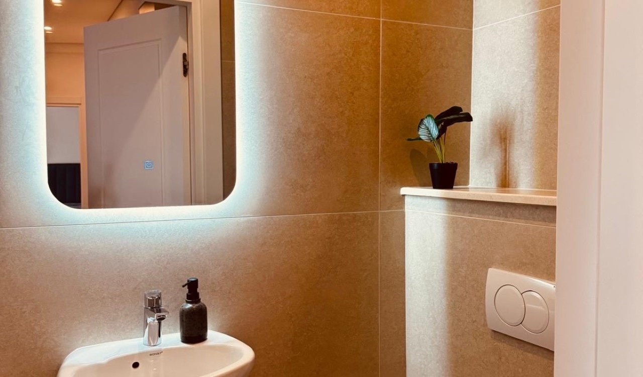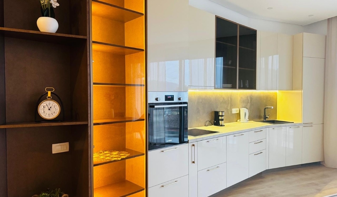 U stanu su korišćeni kvalitetni materijali i savremene završne obrade, dok veliki stakleni otvori omogućavaju obilje dnevnog svjetla i osjećaj prostranosti.