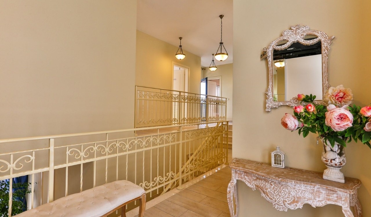 - Prvi sprat: glavna spavaća soba, garderober, radna soba/kabinet, kupatilo.