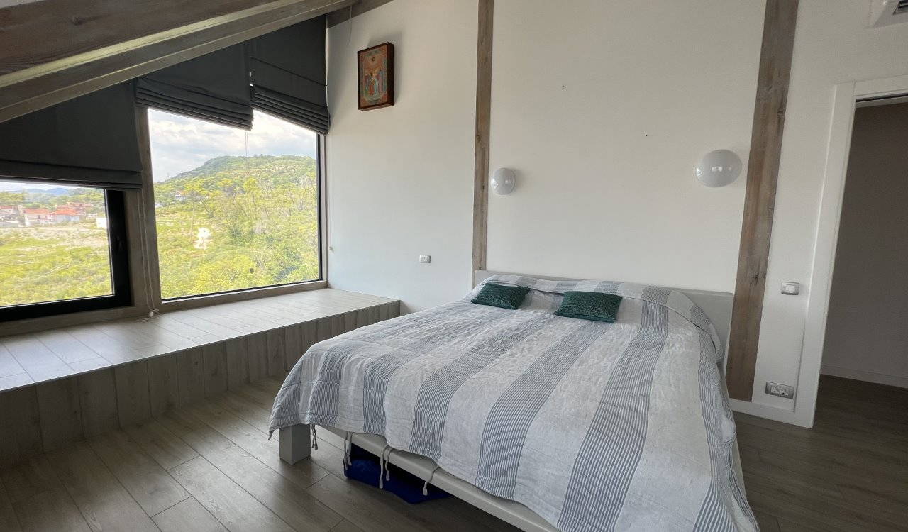 - Stepenište od prirodnog mermera vodi do drugog sprata kuće, gdje se nalaze dvije spavaće sobe sa panoramskim prozorima koji gledaju na planine i Tivatski zaliv.